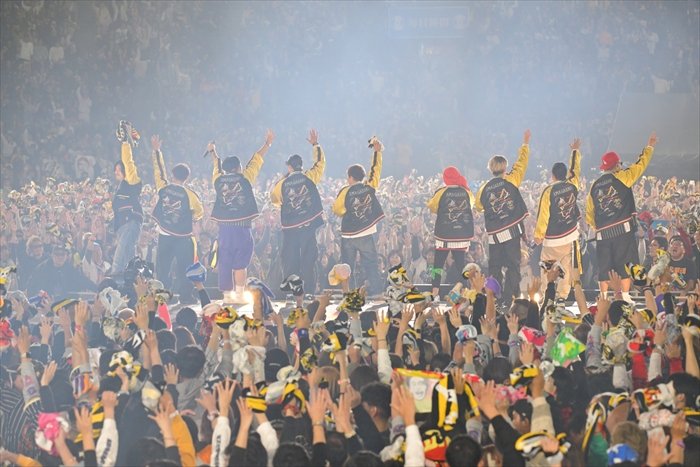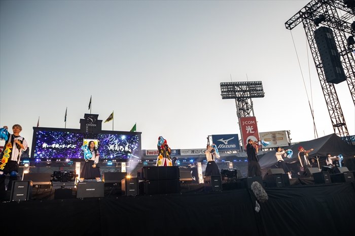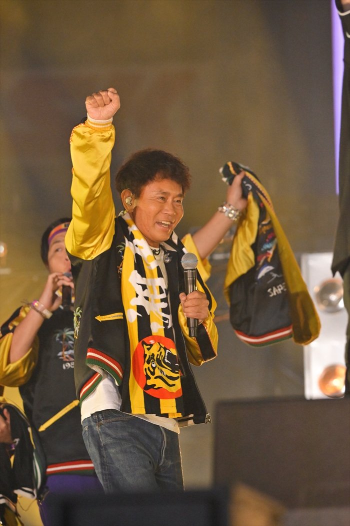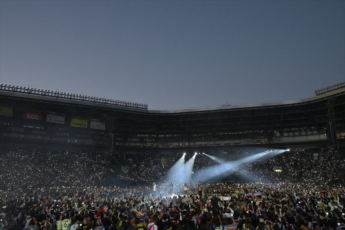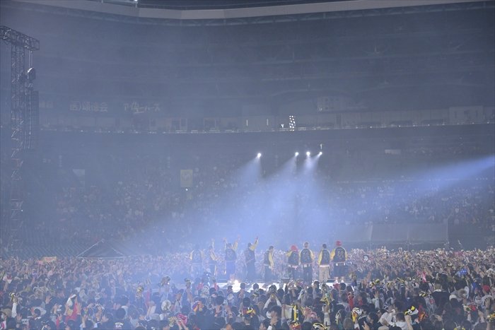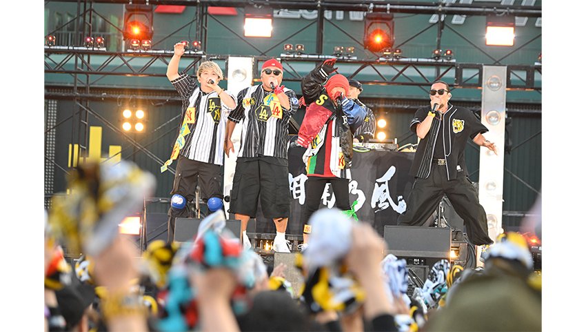 そしてHAN-KUNが、「一つの夢に向かって突っ走ってきた俺らの家族がいたから、このステージに立てたんだと思う」と若旦那に語り掛ける。大の虎党であった若旦那の父親が残した言葉は、「タイガースはお前に任せた。サトテル(=佐藤輝明)は頼んだ(笑)」(若旦那)。「ここに立ってるのを見せたかった。親父、見てるかー! 俺にはこんな素敵な仲間がいるぞー!」と叫ぶ若旦那に、HAN-KUNが「全員で手を上げよう、空に向かって」とささげた「恋時雨」には、甲子園が大きな感動に包まれた。
