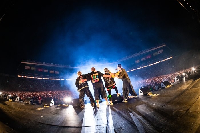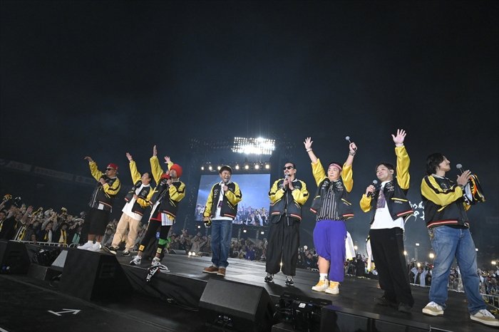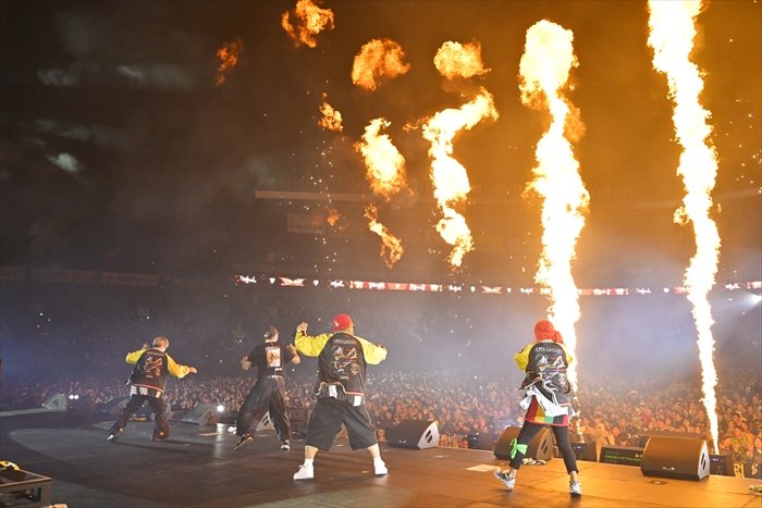 ライブも終盤となった頃、「まだまだやれるかー! 湘南を倒しに来たぞー!」と浜田雅功がステージへ。浜田が現れ、自身MCを務めた音楽フェス『ごぶごぶフェスティバル 2025』のテーマソングとして湘南乃風が書き下ろした「人生爆笑」を、ごぶごぶファミリー共々そろいのスカジャンを着て大合唱。クライマックスはド派手な火柱が上がった灼熱のダンスチューン「バブル」、最強の代表曲「睡蓮花」で畳み掛け、HAN-KUNが「本当に夢みたいな時間でした」と言うのも納得のフィナーレとなった。
