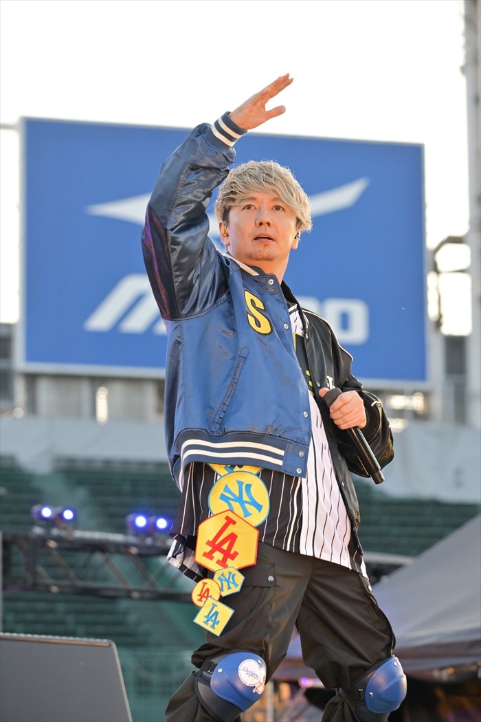 中盤には「選手交代のお知らせをいたします」とウグイス嬢のアナウンスが入り、新しい学校のリーダーズが登場。ライブ初披露となった「青春永遠」に観客も大興奮で、その後も愛に満ちた「我楽多」や「夢物語」で見る者を勇気づけ、日も落ちつつあるタイミングで歌われた名曲「純恋歌」では、スマホのライトがきらめく中、4人がグラウンドに降り熱唱するハイライトが生まれた。