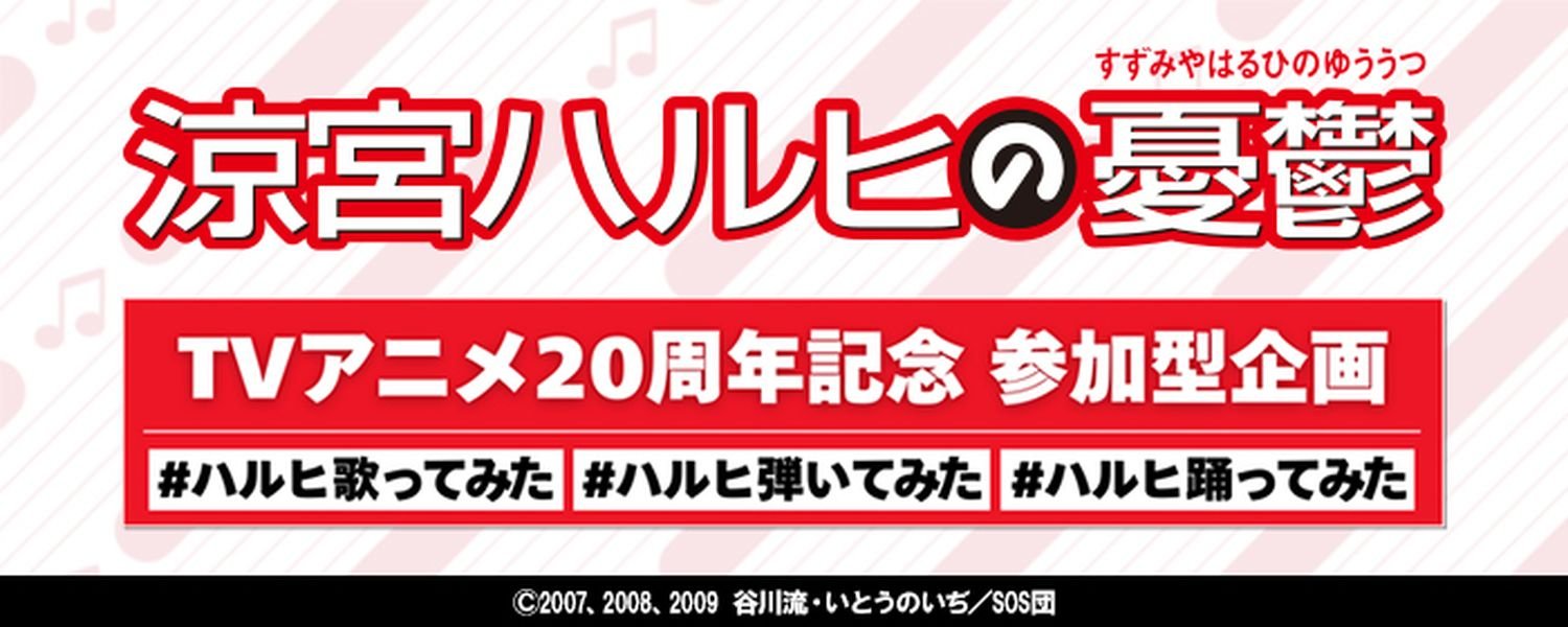 そのプロジェクトの一環として、TVアニメ『涼宮ハルヒの憂鬱』を彩るオープニング主題歌やエンディング主題歌、挿入歌を対象としたユーザー参加型の企画【『涼宮ハルヒの憂鬱』TVアニメ20周年記念 参加型企画 #ハルヒ歌ってみた #ハルヒ弾いてみた #ハルヒ踊ってみた】を2026年4月20日(月)より開催。
