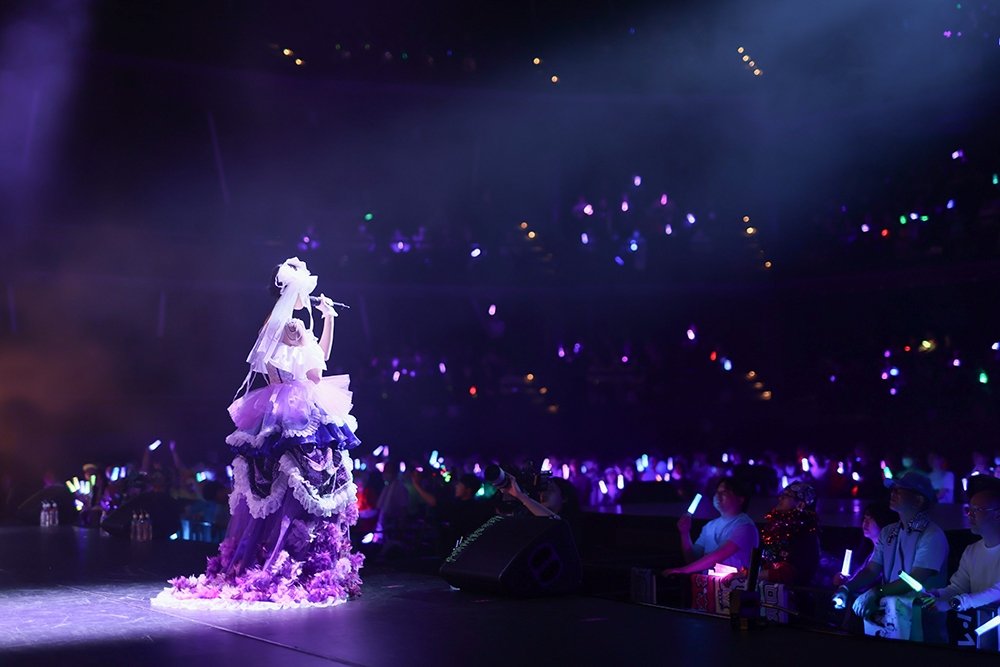 「これからもみなさんの記憶の中に沖口優奈がいたマジパンが残りますように」と涙無しでは聴けないバラード曲「ひとかけら」を歌う。「明日がいつか描いた夢のひとかけらでありますように」そう願うメンバーの心が伝わる一曲だった。続けてエモーショナルに美しい歌声で「今日がまだ蒼くても」を歌い上げる。