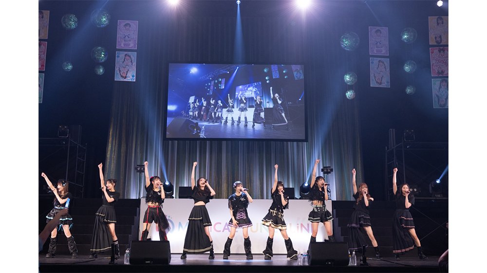 スクリーンにグループ結成当初のメドレー映像が流れ出すと、”あの頃”のSEと共にオリジナルメンバーが登場。マジカル・パンチラインの10周年、そして沖口優奈の卒業を盛大に盛り上げる粋なステージだ。デビュー曲「Magiかよ!?BiliBili☆パンチライン」、続けて「謎から謎めくMystery」をパフォーマンス。約8年ぶりとは思えないステージングにこの日に駆けつけた結成メンバーの心意気を感じた。懐かしさ溢れるMCを繰り広げながら「マジカル・ジャーニー・ツアー」と計3曲を披露。