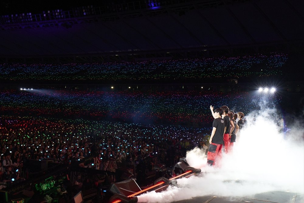 すっかり暗くなった会場に、ライトスティックの青い光が夜空のように広がる。星空の映像をバックに歌われたのは「次の時代へ」。今市とØMIの美しいハーモニーが、グループの明るい未来を想像させるようだった。