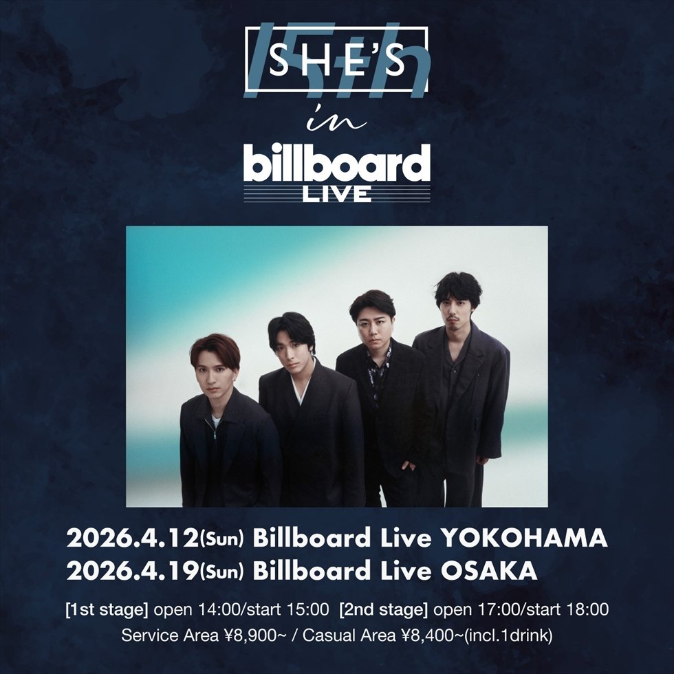 大阪出身、エモーショナルなピアノロックで幅広い支持を集めるSHE'S。今年めでたく結成15周年・メジャーデビュー10周年のアニバーサリーイヤーを迎え、さらなる飛躍を誓う彼らが、東名阪対バンツアーを経てビルボードライブに2度目の登場。