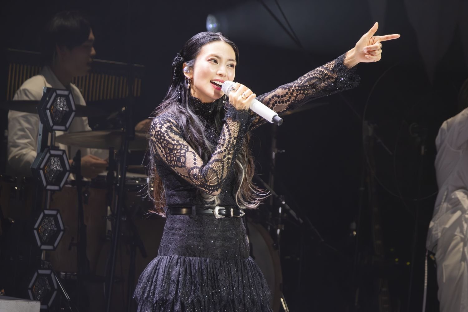 アンコールではツアーTシャツに着替えて登場し、リラックスした表情を見せた。「色々な思いを持った人たちが一つのところに集って、私がこうして舞台に立たせてもらうというのは本当に光栄なことだし、一期一会だなと思います。こうして足を運んでくださってありがとうございます」と感謝の気持ちを伝えると、今回の“邂逅”というテーマについて、「邂逅という言葉は思いがけず巡りあうという意味があるんです」と説明。「きっと皆さんの人生にも、思いがけず巡りあうことや予期せずに起こることがたくさんあると思います」と続け、「でも私は、それは全て成長の材料なんじゃないかなと思って生きています。無駄なことは1ミリもない。そんな生きる希望みたいなものを感じてもらえたら嬉しいです」と観客に向けてエールを送った。さらに、「これからも魂を込めて、思いを込めて、皆さんに寄り添うような歌を届けられたらいいなと思います。みんなで一つの作品を作り上げるお芝居もすごく楽しいので、お声がけいただける限り、これからも頑張りたいです」と今後の意気込みを語ると、満員の場内からは応援の気持ちを込めた大きな拍手が起こった。
