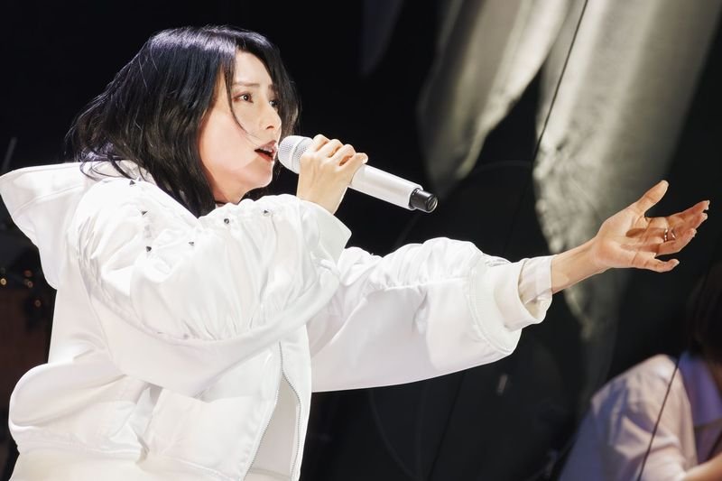 ここで再び場内にノイズが鳴り響き、映像が映し出される。それは冒頭の映像が逆回転するかのような表現となっており、“対”となる二人の魂がひとつに融合していくさまを描いている。出会いと別れ、すれ違いを幾度も繰り返しながら、物語は巡り巡ってここへ辿り着いたのだろう。昨年12月のFNS歌謡祭でのパフォーマンスも大きな話題を呼んだMr.Childrenのカバー「Sign」の歌声は、“対”となる二つの思いを重ねるように優しく温かい響きを湛えており、続く「君の声」では観客に手を伸ばし、抱きしめるように歌った。僕の中に君が、君の中に僕が、私の中にあなたが、あなたの中に私がいる。つまり二人は巡り逢い、ようやく一つになったのだ。本編ラストは、「かたち あるもの」。私の中にあるあなたの存在を確かめるかのように力強く歌い上げ、まるでそれぞれの楽曲の主人公を演じ分けるかのように歌った邂逅の物語は、“対”から一つになって幕を閉じた。