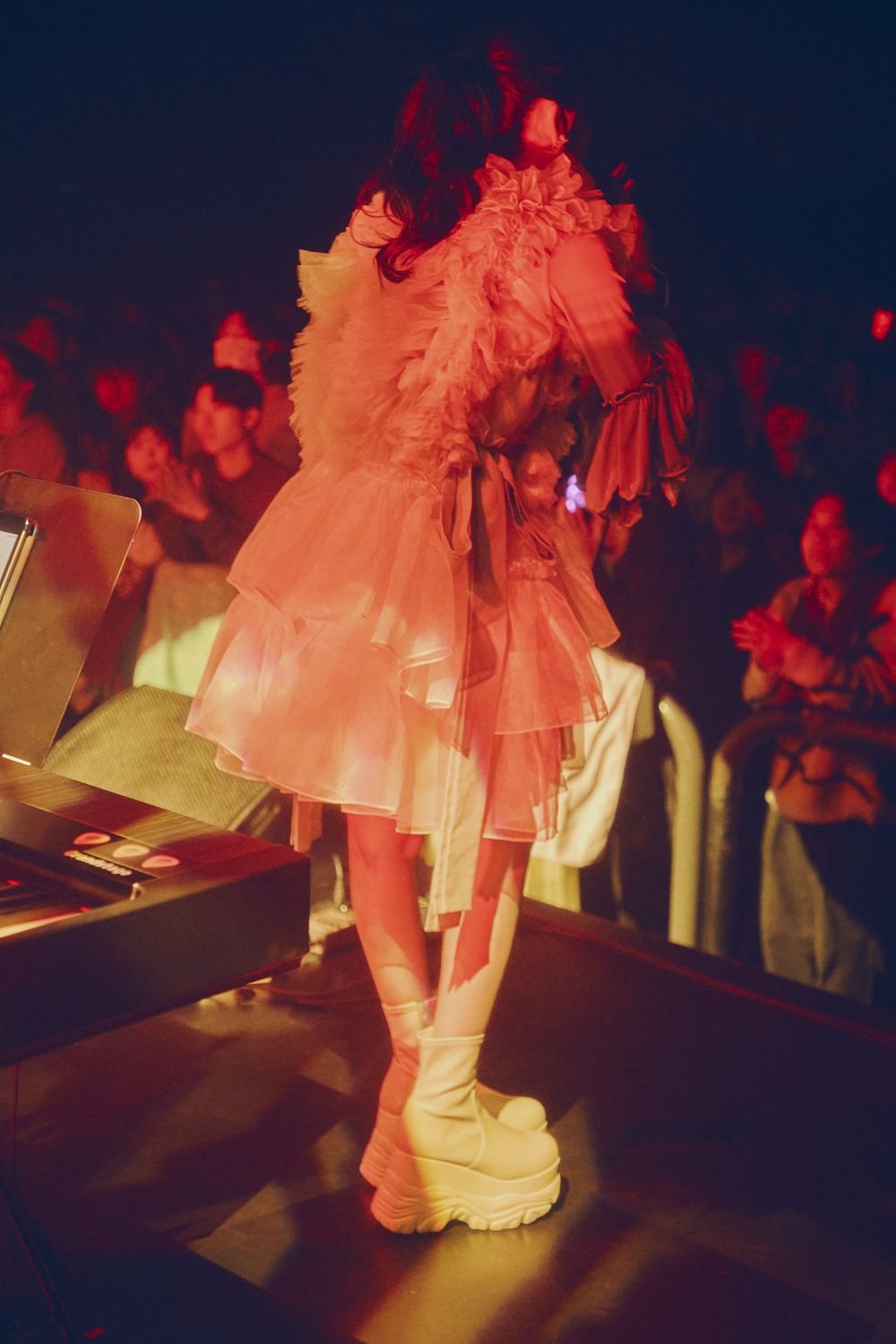 続いて「あんたなんて。」へ。様々な楽器の音が同期として鳴り、りりあ。は、一気に厚みを増したサウンドを推進力にして伸びやかな歌をめいっぱい響かせていく。続く「夏風に溶ける」では、グルーヴィーなサウンドに乗って切ない詩情を送り届け、「3%と私。」では、パワフルな4つ打ちのビートに合わせてとびっきりポップな歌を快活に響かせていく。間奏では、「ここでフリーダンスとか踊れたらかっこいいよね!」「踊れないよ!」「誰かダンスできる人あがってきて!」と、観客と親密なやりとりを交わす一幕もあった。そして、グッズ紹介のMCを経て、ラストナンバー「最後のバイバイ。」を披露。先ほどまでのチャーミングさ全開のMCとは一転して、ひときわドラマチックで切実な歌が響きわたる。深く胸を打つ感動的な幕締めだった。総じて、ミニマムな編成でありながら、りりあ。の多彩な魅力や表現の幅を存分に堪能できるライブだった。