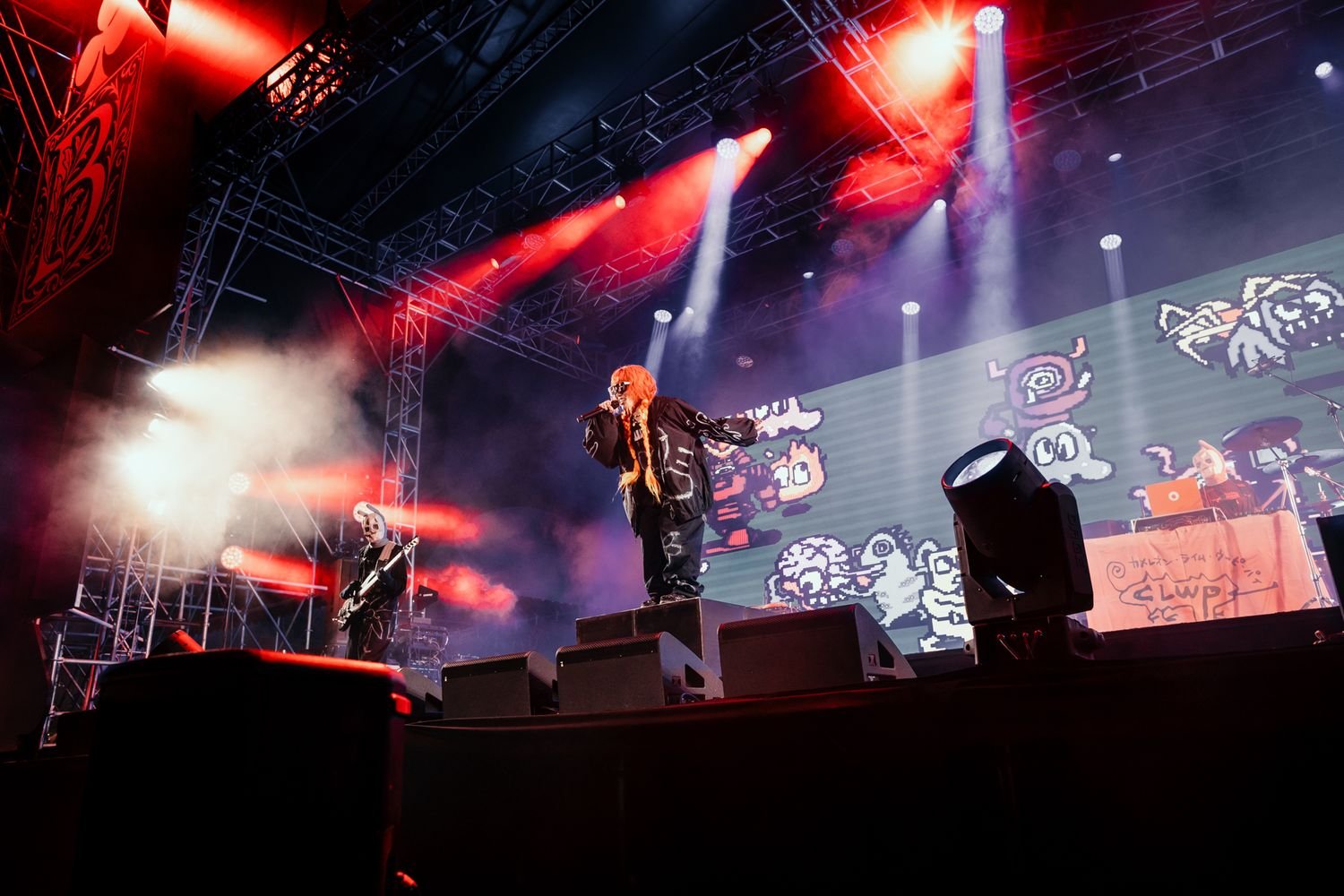 Chi- の圧倒的なエネルギーに加え、Whoopies のふたりもステージを縦横無尽に動き回り、観客を煽り、踊らせ、引き込んでいく。大型スクリーンに映し出されるグラフィックアートも CLWP のポップで遊び心ある世界観を鮮やかに描き出していた。その後、CLWP が担当する『ONE PIECE』 エッグヘッド編のエンディング主題歌「PUNKS」が始まると、観客の空気が変わる。背後の映像とともに、ビッグビート調の強烈なサウンドに合わせて多くの観客が体を揺らし始める。CLWP にとっての BIG MOUNTAIN MUSIC FESTIVAL 初ライブは、最後まで熱の途切れない気迫あふれるものとなった。
