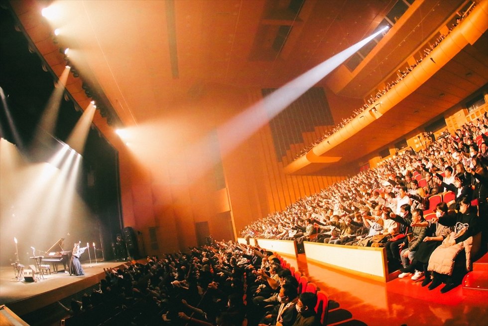 「声だけで泣ける」のキャッチコピーでデビューした奥華子が、デビュー20周年を記念した弾き語りコンサートのファイナルを、東京都北区・北とぴあ さくらホールで締めくくった。