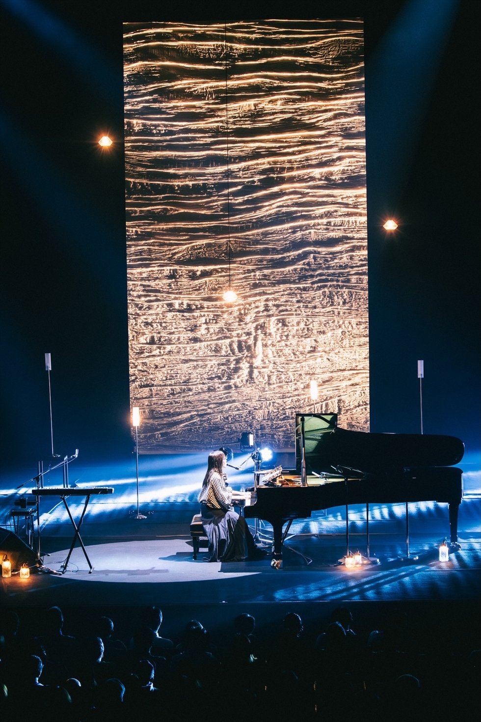 コンサート中盤には、SNSでリバイバルヒットした「楔 -くさび-」や究極の失恋ソング「初恋」を披露。後半には、劇場版アニメーション『時をかける少女』の主題歌「ガーネット」と挿入歌「変わらないもの」を歌い上げた。この2曲は昨年10月にYouTubeチャンネル「THE FIRST TAKE」に初登場した際に弾き語りで披露し、わずか2ヶ月で計1,000万回再生を突破。映画公開から約20年経つ今もなお、彼女の歌声と共に根強い人気があることを証明した。