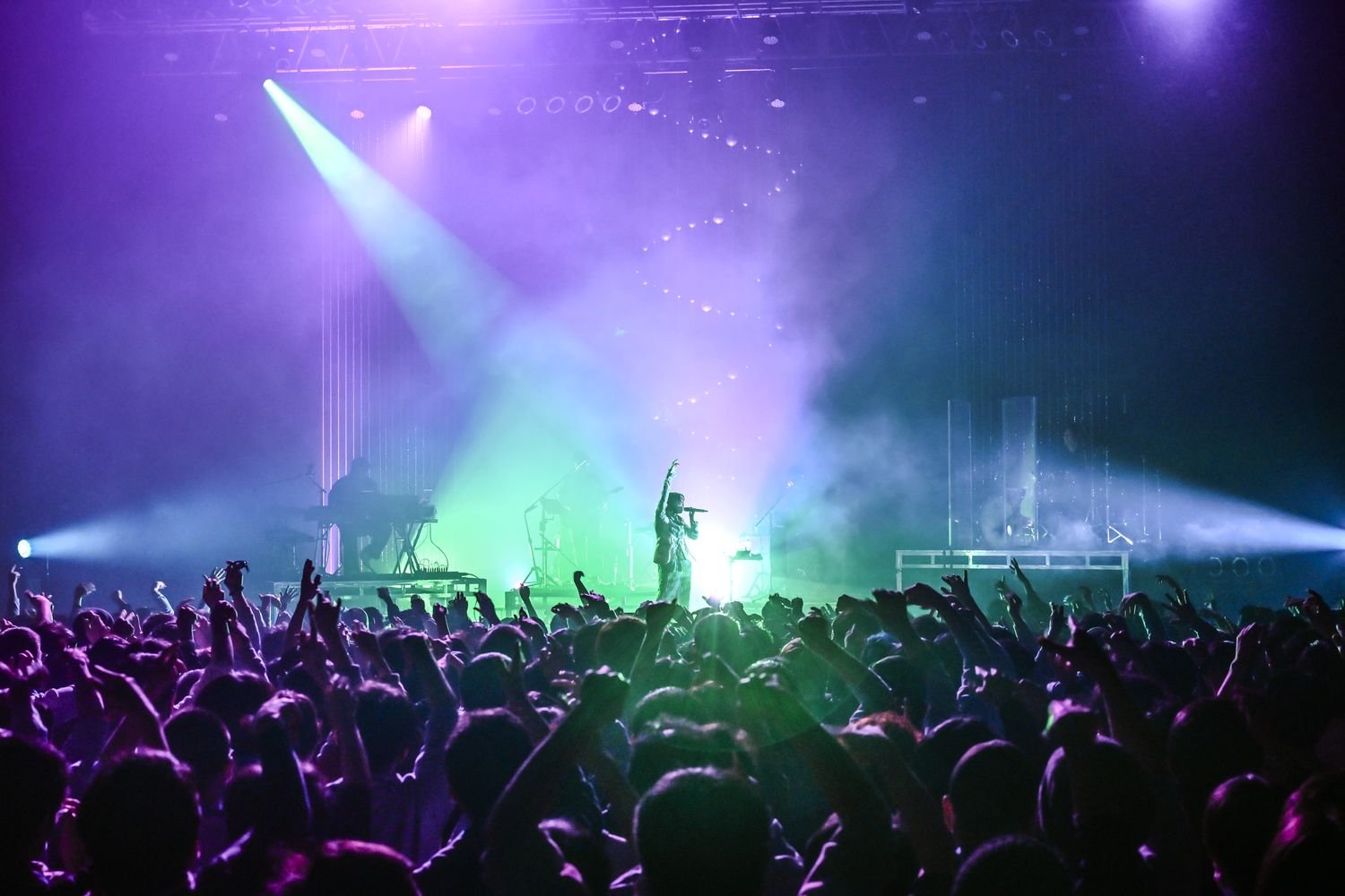 ライブは、おとぎ話のような歌詞が印象的な「twelve」よりスタート。神秘的なレーザーとスモークで包まれた楠木ともりが、楽曲のもつ世界観を存分に表現し、観客を物語へと引き込んでいく。続いて幕が落とされバンドメンバーが登場すると、「風前の灯火」「BONE ASH」を披露し、会場の熱気は最高潮に。