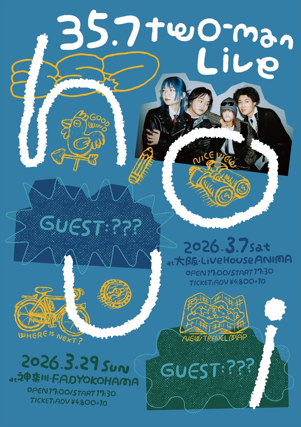 さらにアンコール後のMCにて、来年3月に行われるゲストを招いてのツーマンイベント・【35.7 two-man live “houi”】 、メンバーの大学卒業を記念して企画される【35.7 graduation ceremony “汽笛“】の開催をダブル発表。ツーマンライブのゲストは追って解禁になるとのこと。各会場即完が予想されるライブハウスでの主催公演、是非早めにチケットをゲットしてほしい。両公演ともチケットオフィシャル先行の受付がスタート。