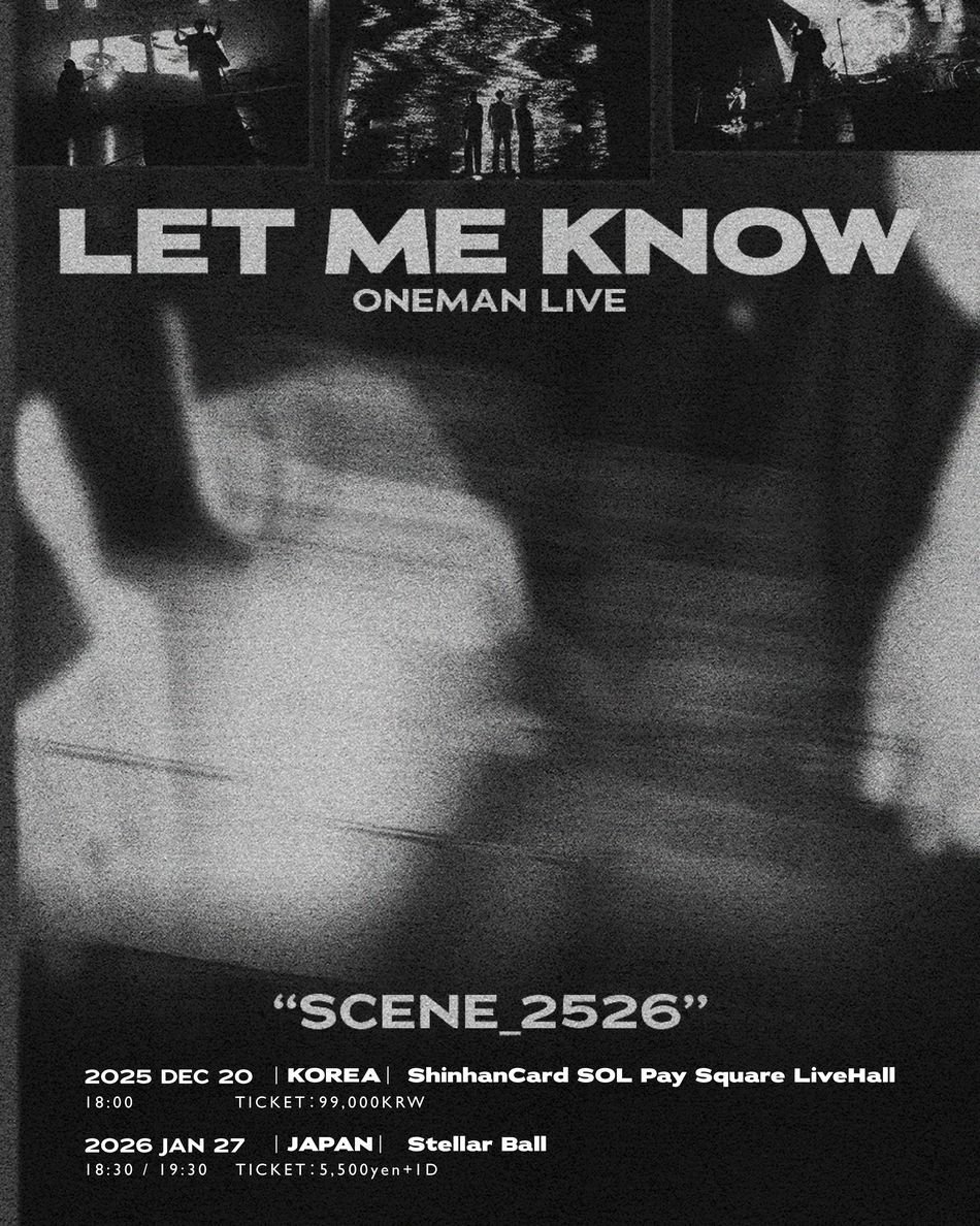 そんなLET ME KNOWが、東京と韓国・ソウルの2都市で単独公演「LET ME KNOW ONEMAN LIVE - SCENE_2526 -」の開催を発表した。ソウル公演は12月20日(土)ShinhanCard SOL Pay Square LiveHallにて、東京公演は1月27日(火)ステラボールにて開催予定。ソウル公演は7月のチケット完売を受けて、さらに規模を拡大した会場で行われる。チケット販売スケジュールはオフィシャルSNSをチェックして欲しい。