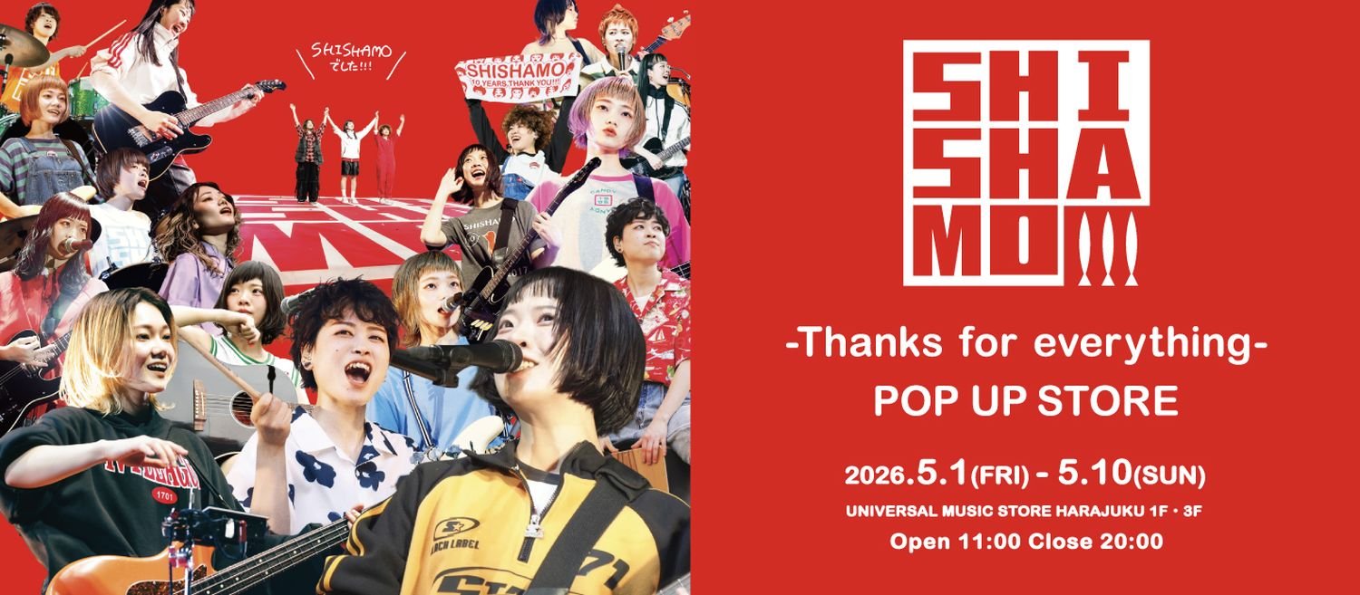 6月13日・14日にUvanceとどろきスタジアム by Fujitsu(等々力陸上競技場)にて開催するワンマンライブをもって活動を終了することを発表している3ピースロックバンドSHISHAMOが原宿・竹下通りにあるUNIVERSAL MUSIC STORE HARAJUKUにて、「SHISHAMO -Thanks for everything- POP-UP STORE」を開催することが決定しました。