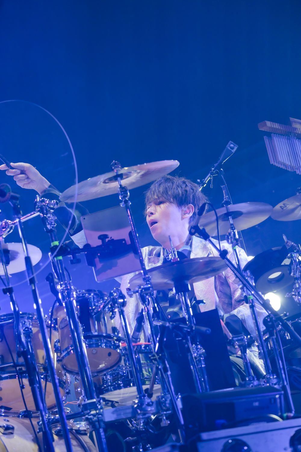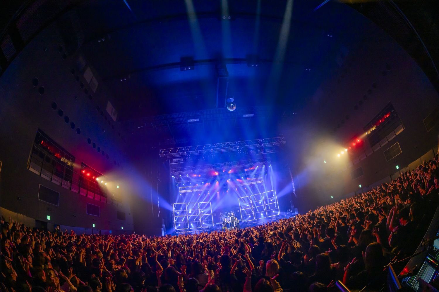 「夏恋」ではセンターに明希とShinjiが集まり、2人の肩に手を置くマオ。かと思えば、Shinjiがドラム台に駆け上がり、ゆうやとマオ、明希の3人が縦に直列する場面も。歌詞の“君”をファンに置き換えて<隣には“お前ら”がいいな>とマオが指さすと、ファンは歓喜の声を上げた。明希はドラム台に上りゆうやに背中を預けてプレイ。ライブが終わりに向かう寂しさとは裏腹に、明るい曲調に乗せて、次々と眩い名場面がステージ上で生まれていった。さらに楽しさを加速させていくように「smile」を軽やかにパフォーマンスし、「まだまだ行こうか!」と煽って「ドラマ」へ。ラストの「one way」も含め、この日最大級のボリュームでファンの力強い「Oi Oi!」コールが響き、幸福な一体感の中でライブは締め括られた。