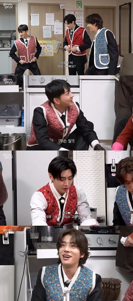「ヴァンパイアで生き残る」は、500年間正体を隠して生きてきたヴァンパイアたちが、生存難易度が極めて高いソウルで人間界に溶け込むための、涙ぐましい適応記を盛り込んだコンテンツだ。初回では、JUNGWON、JAKE、SUNGHOONの3人が敬老堂(高齢者施設)を訪れ、おばあさんたちと一緒にキムジャン(冬のキムチ漬け)に挑戦する姿が描かれた。