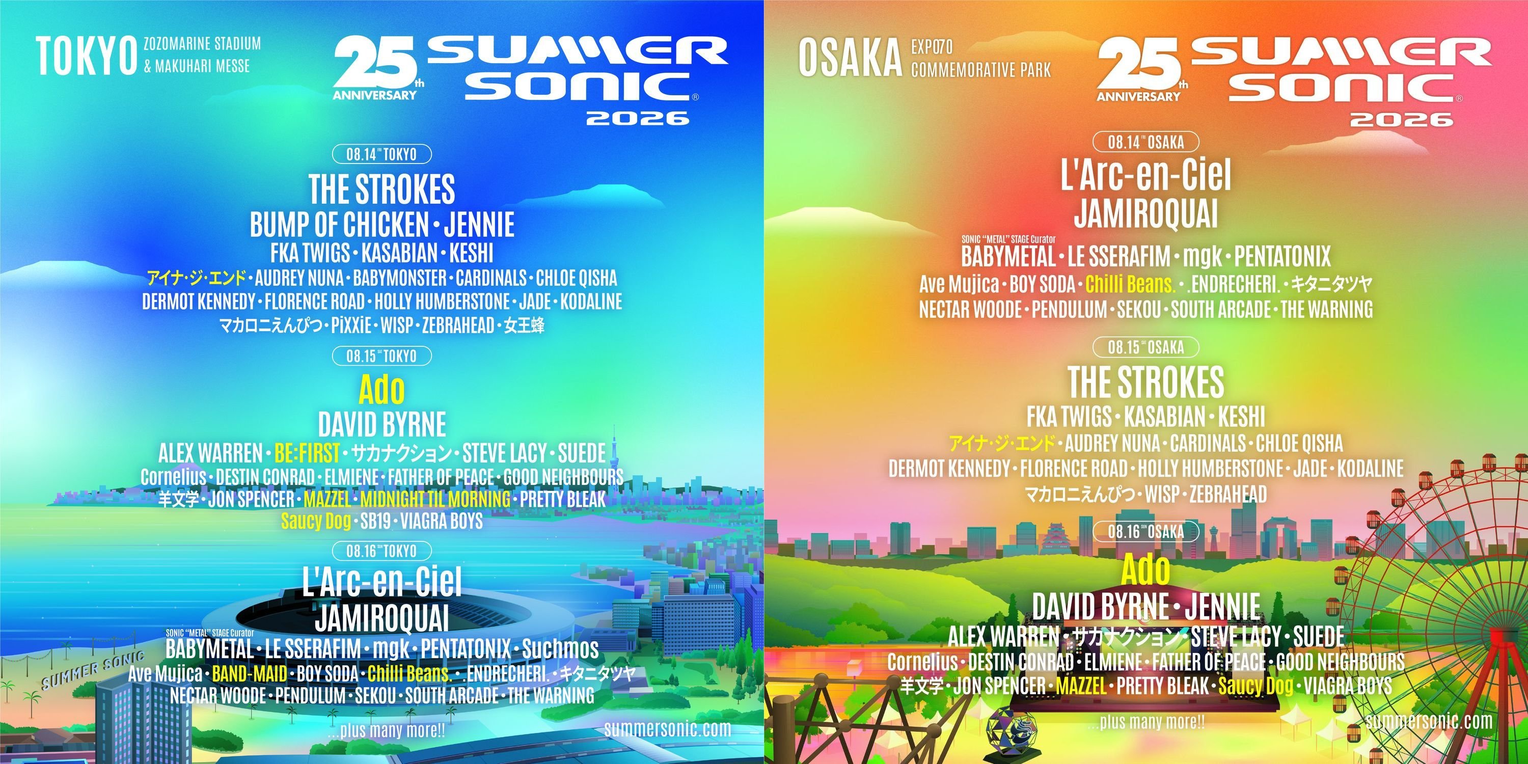 大きな周年を迎える今年のサマソニは、ただ豪華な名前が並ぶだけではない、フェスの現在地と未来を力強く示すラインナップになってきました。今後も4月中に、さらなる追加アーティストの発表を予定しています。