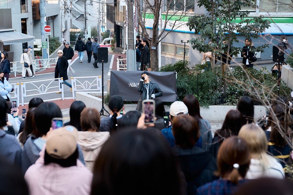 会場となったのは渋谷の音楽カルチャーを応援する“SHIBUYA PARK MUSIC”プロジェクトの舞台である渋谷区立北谷公園。当日は2月とは思えない暖かな日差しに包まれる中、Aile The Shotaがステージに登場。自身もよく足を運ぶ街であり、昨年4月にも同公園でサプライズライブを開催していたことから、街の雰囲気に自然と溶け込んでいる様子を見せた。
