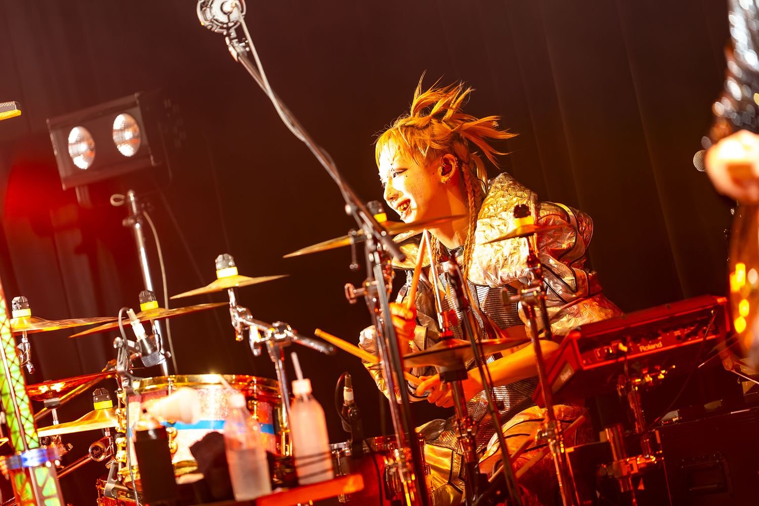 さらに「もう一丁行けるかい? 頭壊せるか?」と続いた「Silly」で、フロアの熱を上昇させると、最新EP収録の「Rasen -螺旋-」で妖しく淫らな楽曲世界へ誘う。