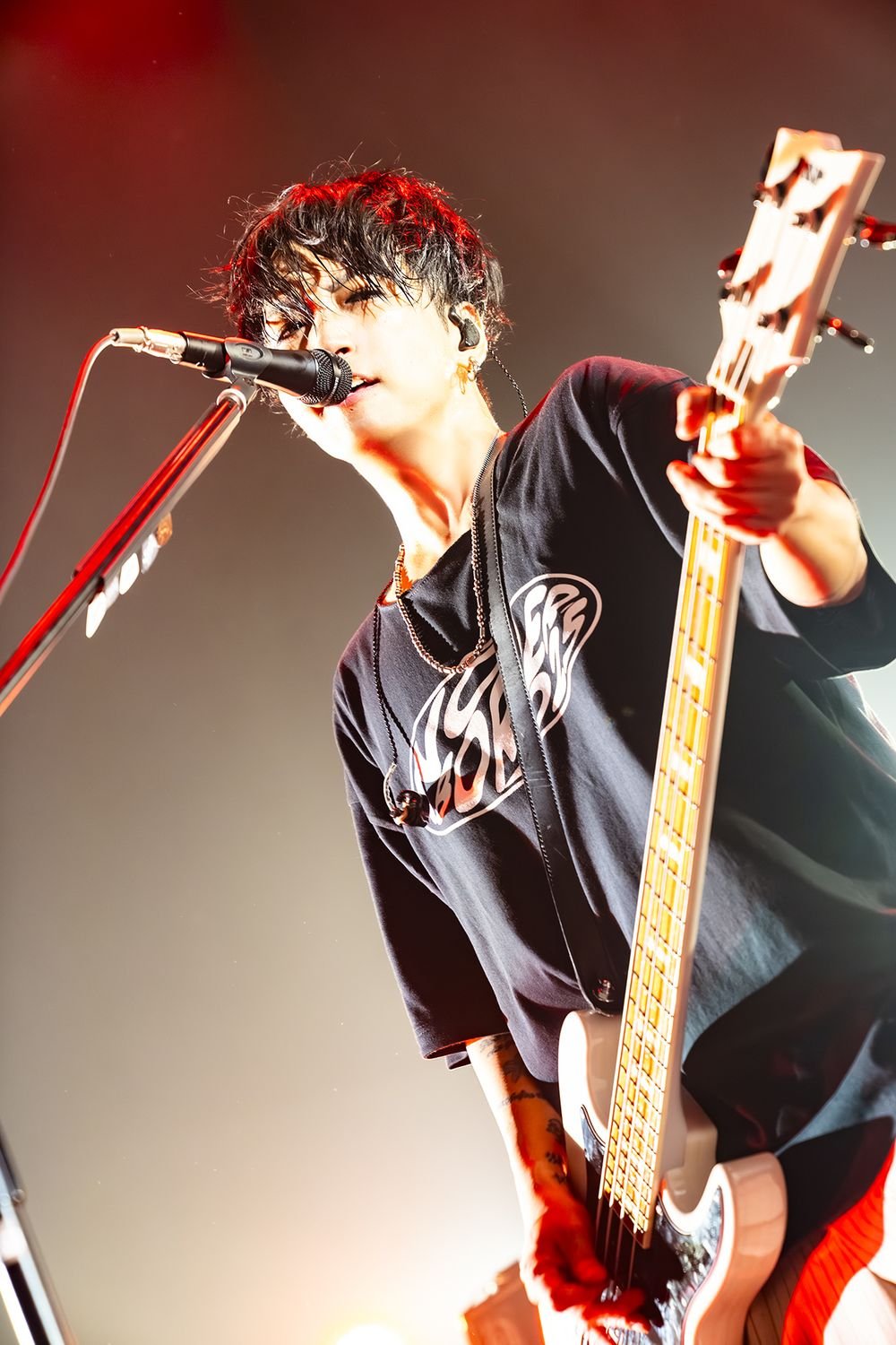 互いの音を確認し合うように丁寧に、そして力強く鳴らす演奏に観客が身体を揺らすと「お前らの声、聞かせてくれ!」とAKiが告げ、掛け声を合わせるフロアに早くも一体感が生まれる。