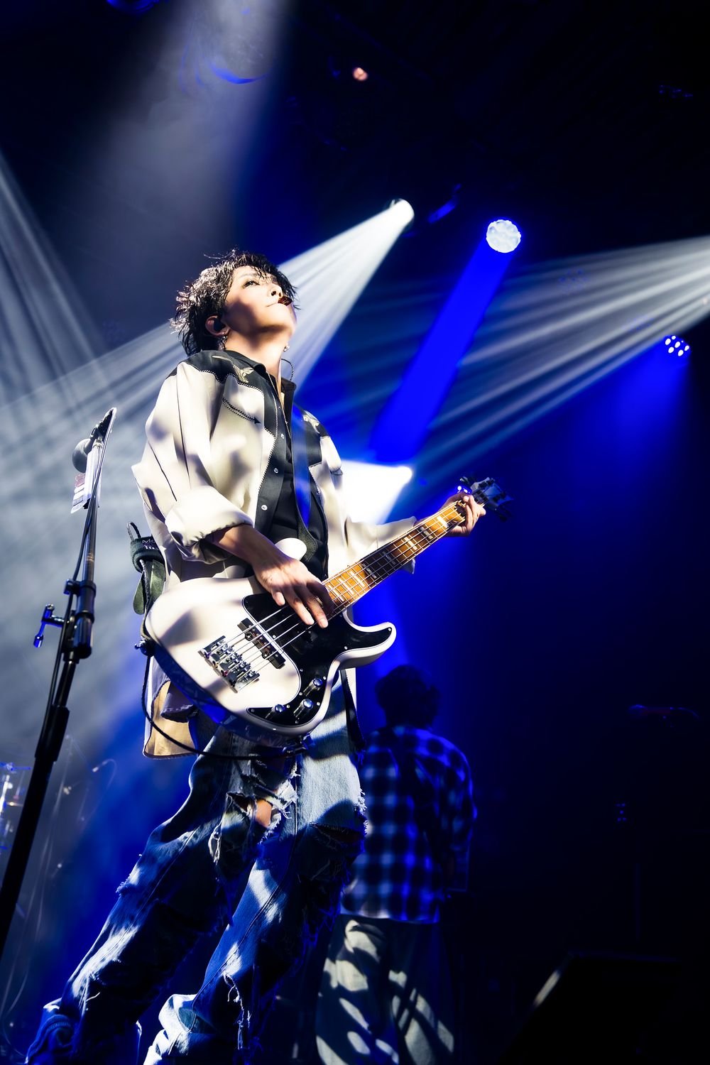 志雄のカウントで始まったOPナンバーは、重低音を響かせるAKiのベースを軸とする、どっしりとしたサウンドで魅了した「Life is...」。