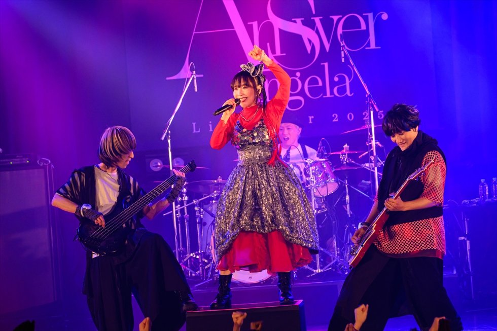 それは2025年12月19日の18時45分を回ったときのことだった。突然ピアノのイントロが流れ出すと、横浜・1000CLUBを満たす観客が「angela体操」を始めた。大観衆による前後屈、アキレス腱伸ばし、準備運動。このレポートを読んでいる方は一体何が起こったのか、理解が追いつかないかもしれない。しかし、会場にいたぢぇらっ子(ファン)たちは分かっていた。これがangelaの12thアルバム「Answer」からの“新曲披露”であったことを。キャリア20年以上を数えてなお、新たなライブエンターテイメント演出に挑戦するアーティスト。それがangelaだ。angela Live Tour 2025「Answer」のツアーファイナル・神奈川公演の模様をお届けする。