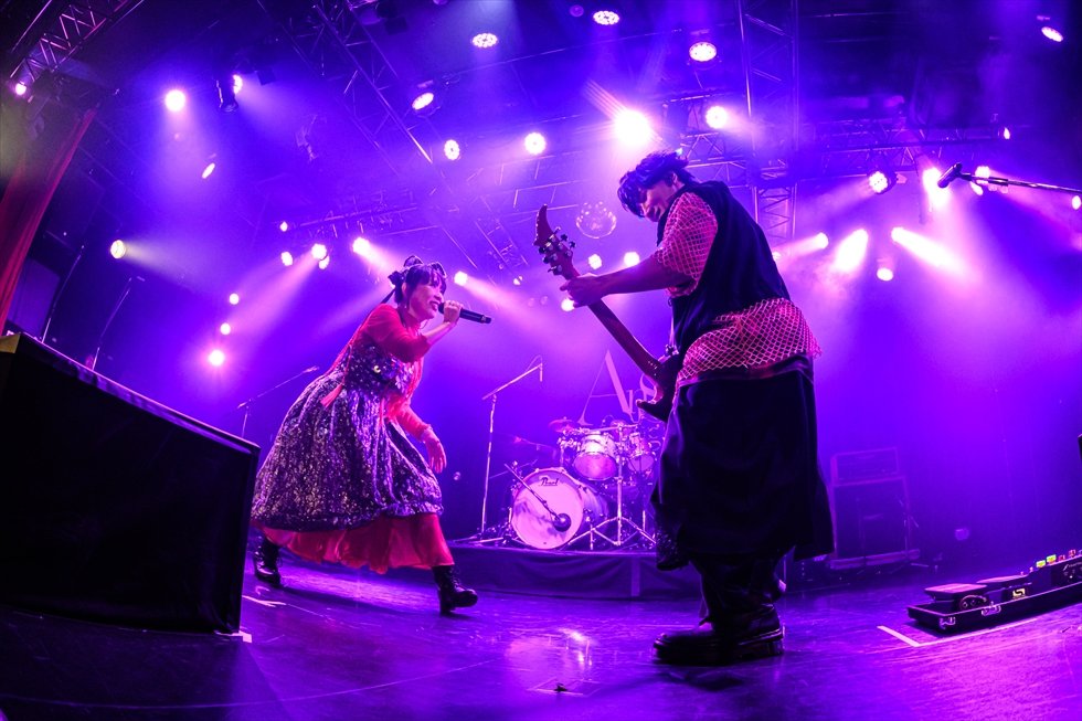 ファンクラブイベントを除くと久々になるライブハウスツアーとなったこのサーキット。国内8公演に海外2公演と長期にわたるツアーで、このファイナルは様々な経験を経た「Answer」を示す公演だ。じんぼちゃん<Dr.>、Buono<Ba.>に続いてステージに登場したKATSU<Gt.>は、開口一番「いろんな意味で、ただいま~! 走り抜けようぜ!」とシャウト。3人のインストでオーディエンスを煽り、赤いロングスカートを纏いドレッシーな姿で表れたatsuko<Vo.>の「ファイナル横浜、行くぞ!」の掛け声で本編がスタートした。