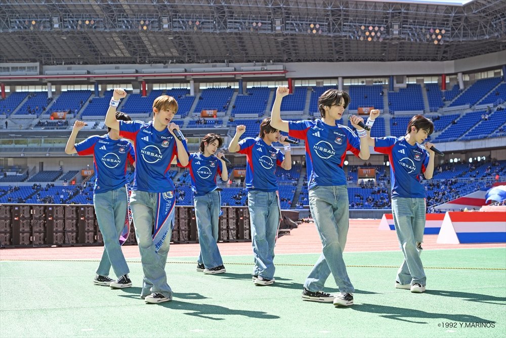 JCONICが手掛ける新世代J-POPボーイズグループaoen(アオエン)が、3月14日(土)に日産スタジアムにて開催された明治安田J1百年構想リーグ「横浜F・マリノス対ジェフユナイテッド千葉」のキックオフ前に登場し、エネルギッシュなライブパフォーマンスを披露した。