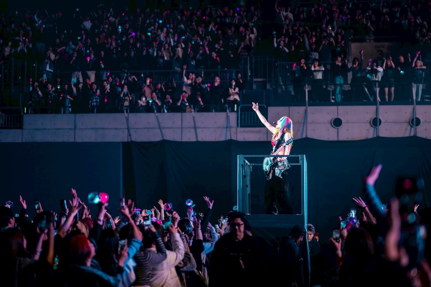 そうしてエレキギターをかき鳴らし、アリーナを一周しながら「I’m Not OK」を歌う。ギターを抱えたままシャウトしながら歌われる「I’m a Pop」、バンドアレンジによる重低音とグルーヴの凄まじい「FLIP FLAP」や「^_^」などでさらにフロアを盛り上げると、その後にやってくる静寂の中、2度目の朗読でちゃんみなはこう語る。