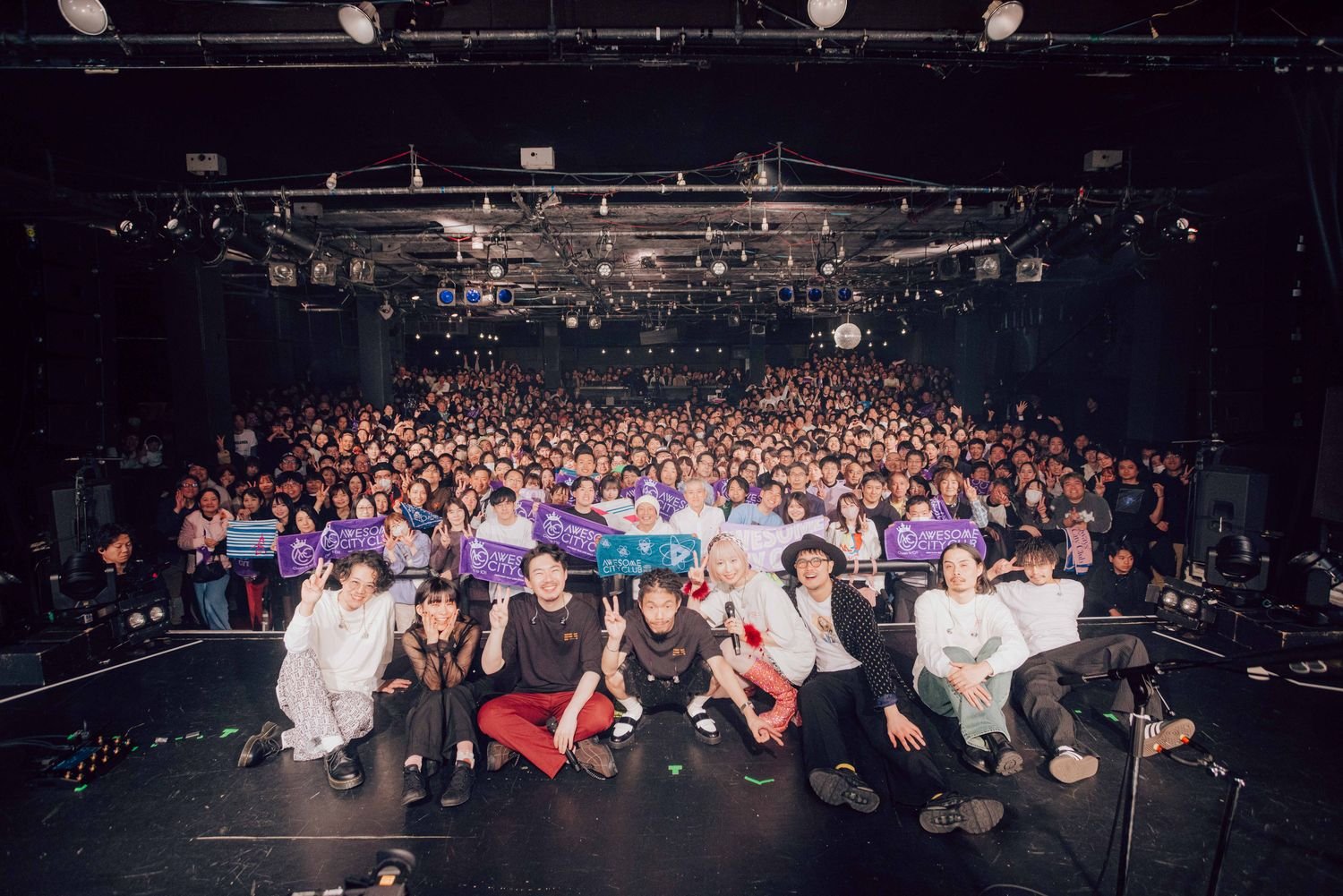 全20曲披露したうち7曲は、翌日1月30日にリリースしたニューアルバム『Cheers to 10!!』収録の新曲たち。そんなセットリストも演奏自体も、今がバンドとして最高な状態であることを表していた。最後には、脱退したマツザカタクミ(Ba, Rap)、ユキエ(Dr)を迎えて、初期メンバーで演奏するというサプライズも。2013年の結成から13年、メジャーデビューから11年、一度も止まることなく歩み続けたAwesome City Clubは、ピークを迎えたまま、3月31日より活動休止期間に入る。