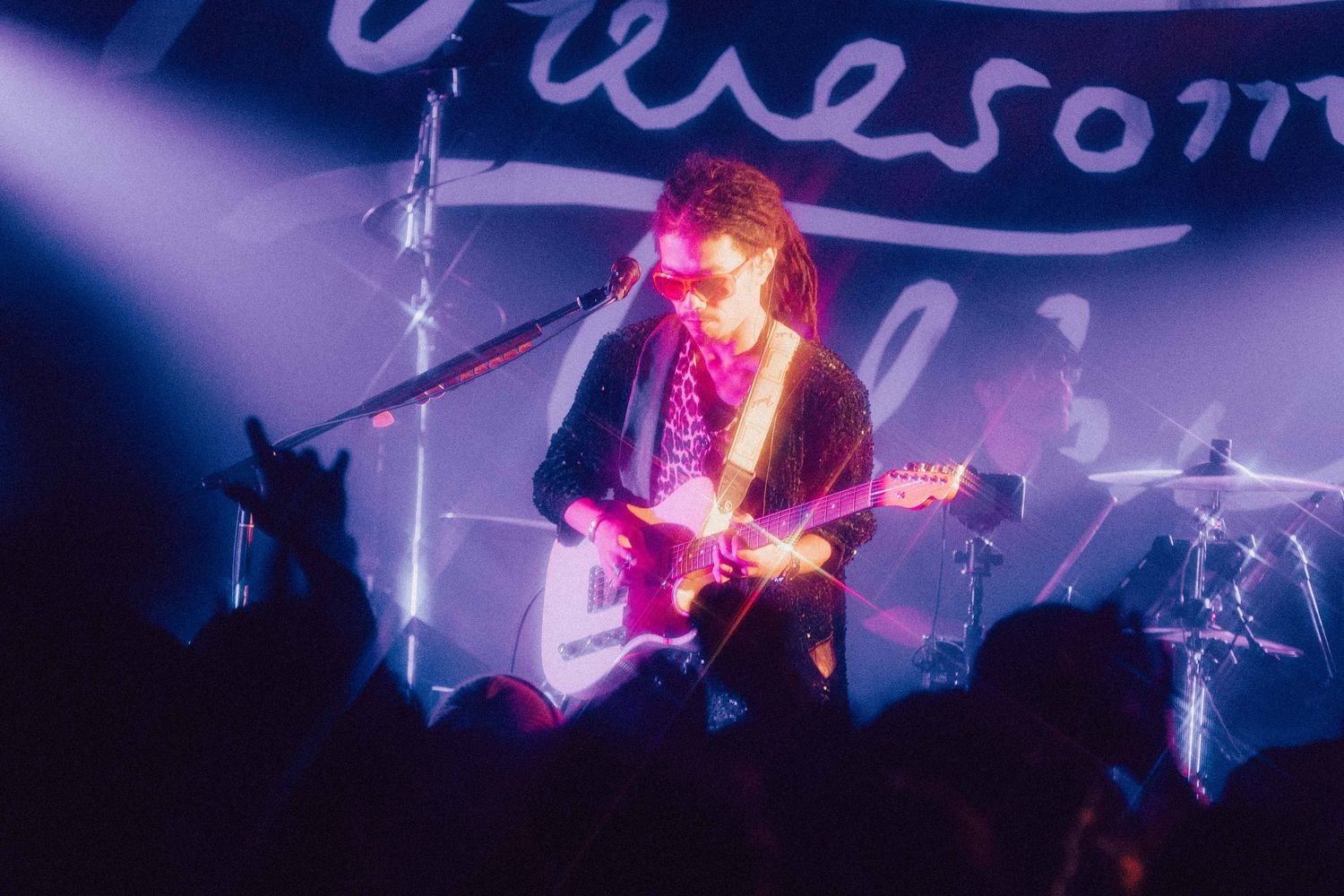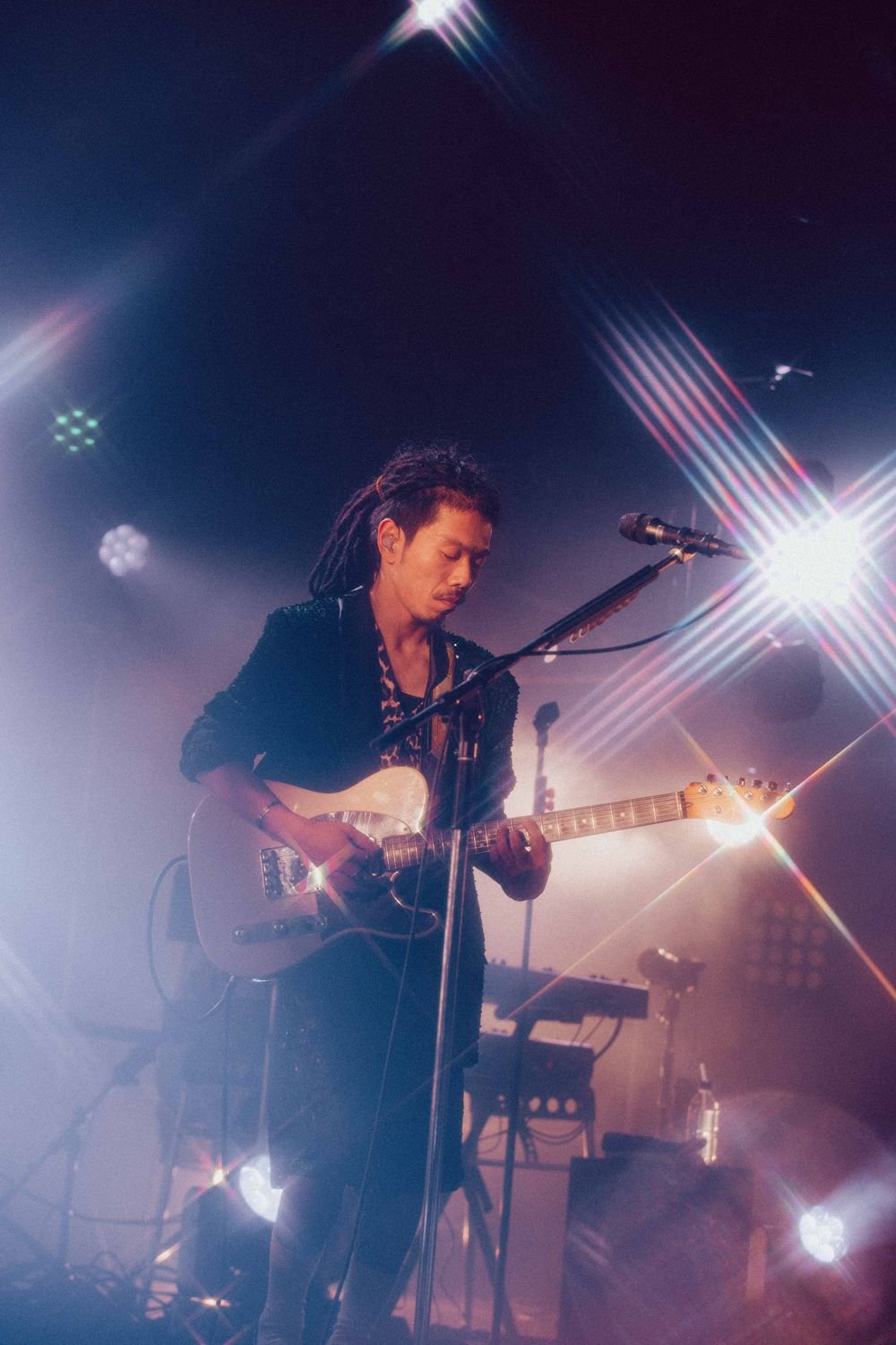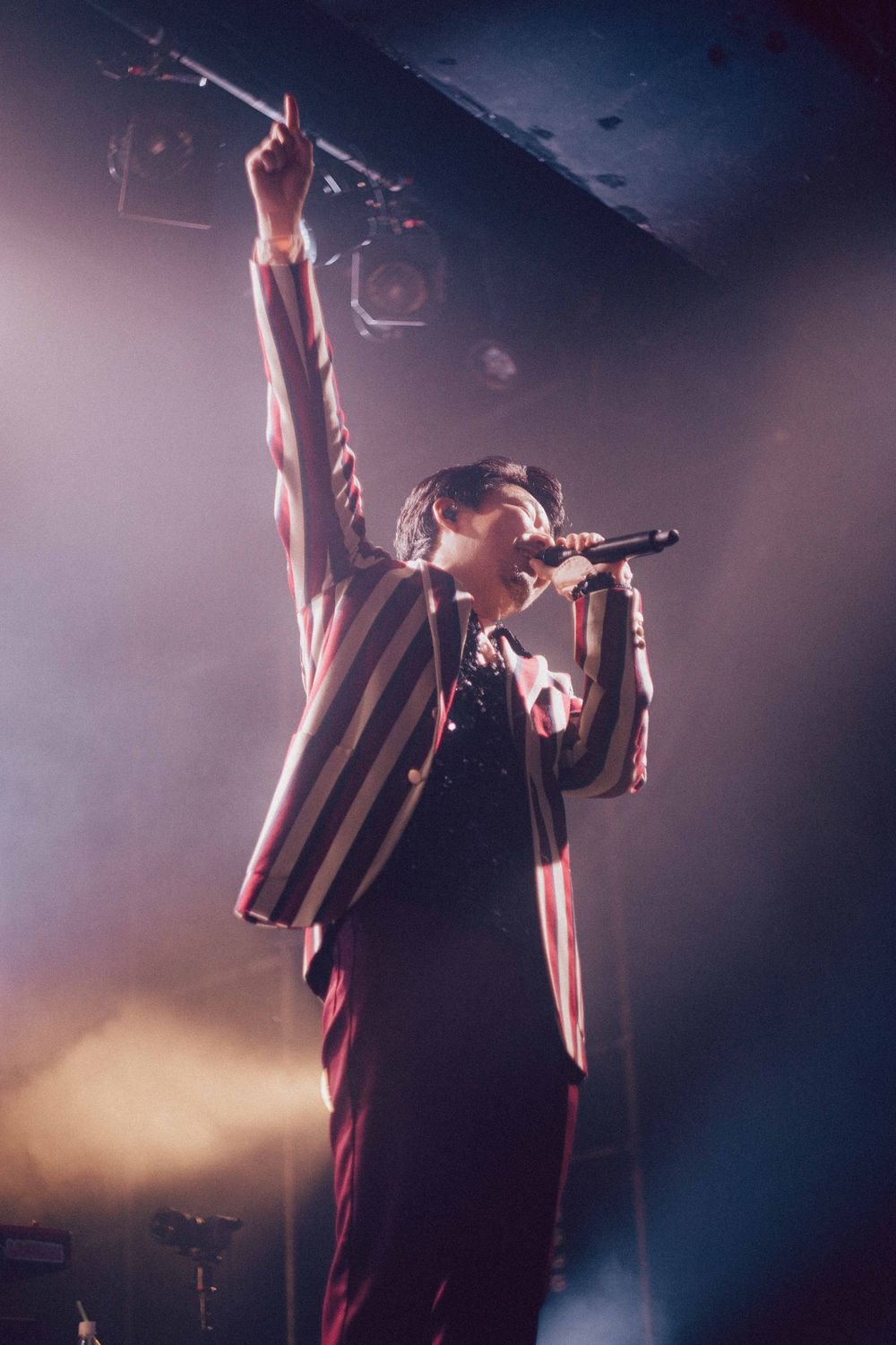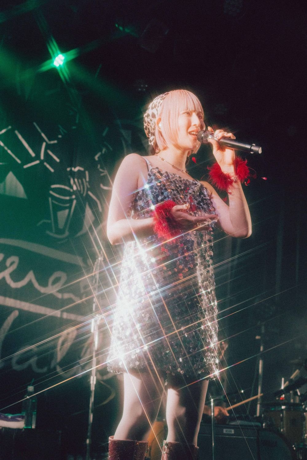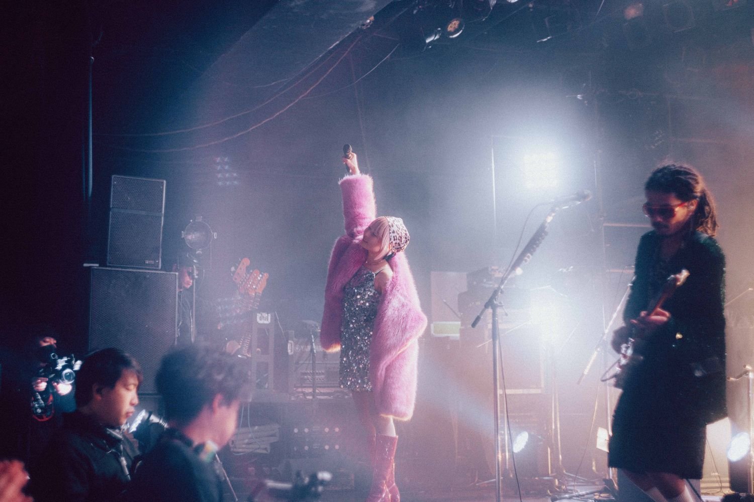 開演の合図とともに暗転すると、Flaming Lips“Race for the Prize”が流れる中、光が乱反射する衣装を身に纏ったatagi(Vo, Gt)、PORIN(Vo)、モリシー(Gt)が登場。活動休止前ラストライブの幕開けに選んだ楽曲は、“ファンファーレ”だ。《ああ 世界は美しい》《笑って 切ない気持ちはサヨナラさ》という歌詞が挨拶代わりに響く。その後のMCでatagiが「ぶっちゃけ活休前最後のライブって、どんなテンションで見たらええんやろうってお客さん自身も思っているんじゃないかなって思うんですけど、僕らが出している音や言葉、パッションを受け取ってくれたらいいな」という言葉があったが、笑顔で過ごす前向きな夜にしたいという意志が込められているオープニングだった。