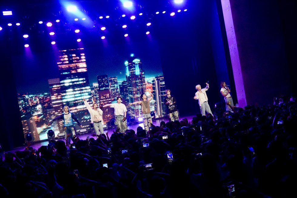 力強い足音が響くストンプが印象的な「テンハネ-1000%-」を経て、〈BBZ BALLISTIK BOYZ/ayayaya〉のフレーズをオーディエンスと何度か繰り返すと、そのまま「Most Wanted」へ。メンバーと観客によって会場に響きわたる〈BALLISTIK BOYZ〉が、上海の地に彼らの名前をたしかに刻んでいるようだった。「Drop Dead feat. TRINITY」でも大勢の観客がハンズアップして体を揺らし、序盤にして会場は一体感を見せていた。