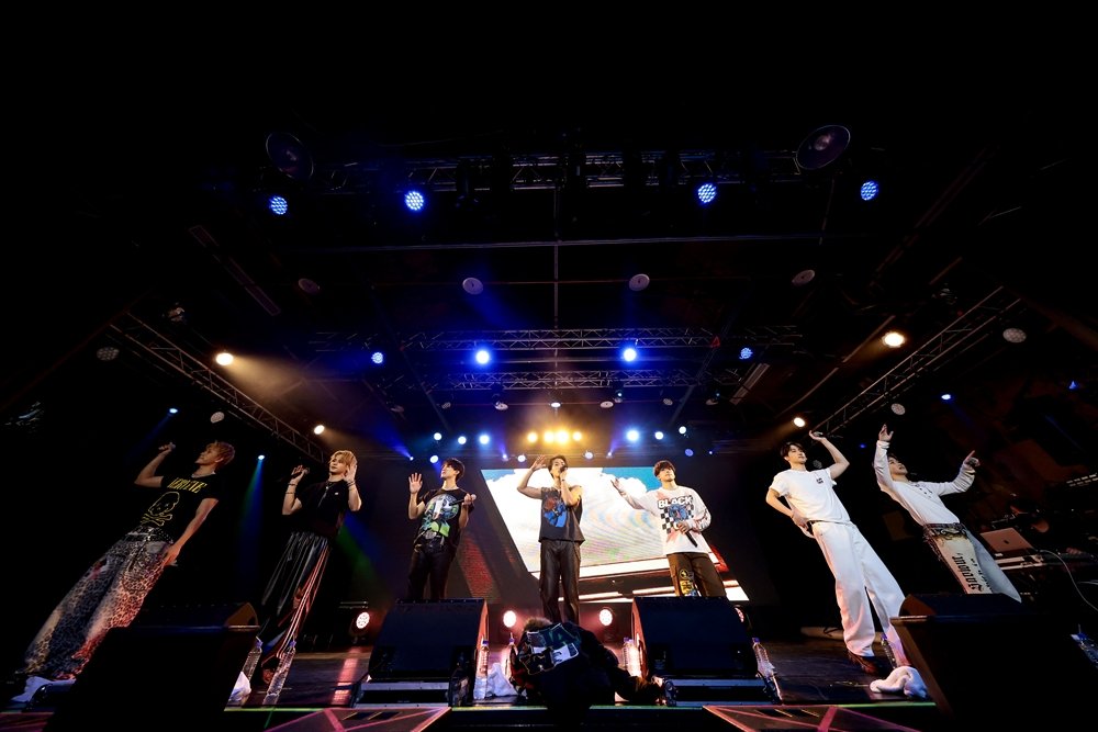 ライブはデビューアルバムに収録されている「NU WORLD」で幕を開け、続けて昨年第2章の幕開けとしてリリースされたEPの表題曲「Stardust Forever」を披露。松井が「Hands Up!」と煽ると、観客は一斉に手をあげてリズムに身を委ね、会場は大きな一体感に包まれた。