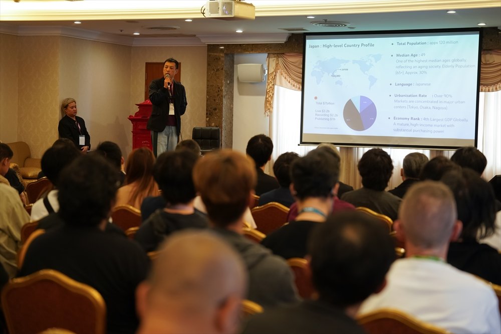 日本のカンファレンスセッションには、6 人のスピーカーが登壇。日本音楽市場の“いま”が、ライブツアー、ストリーミング、ファンダム等様々な側面から語られた。セッションは、立ち見聴講者まで出る満員御礼となり、日本音楽市場に向けられた注目の高さを感じた。