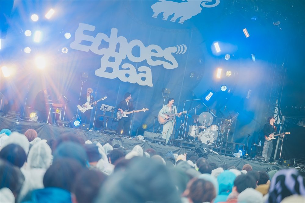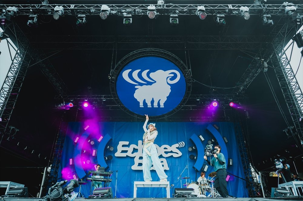 横浜港に打ち上がる花火と観声に迎えられて登場したのは、初日大トリのキタニタツヤ。「かすかなはな」「聖者の行進」でフィールドの熱を一気に上げると、グルーヴィーな「ずうっといっしょ!」で踊らせて、ライブ序盤にして場を完全掌握。トリに相応しいエネルギッシュかつ、堂々とした歌と演奏に観客のボルテージが高まる中、投下されたのは最新曲「火種」。ラストはオーディエンスの大熱狂に包まれる中、「青のすみか」「次回予告」を披露。「Echoes Baa」初日を激しく美しく締めくくり、2日目へバトンを繋いだ。
