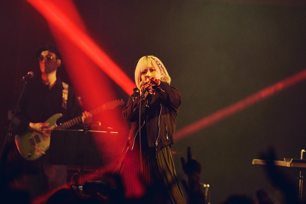 オープニングアクトは作詞、作曲、編曲、イラスト制作、映像編集まで自身で行うマルチクリエイター、紫 今。いきなりパワフルなロングトーンでオーディエンスを掌握。「今日はあなたたちの心を奪いにきた」と宣言し、「魔性の女A」では一気に沼に引き込むような妖艶さの中、「クレオパトラも見惚れちゃう」というパンチラインが響いた。