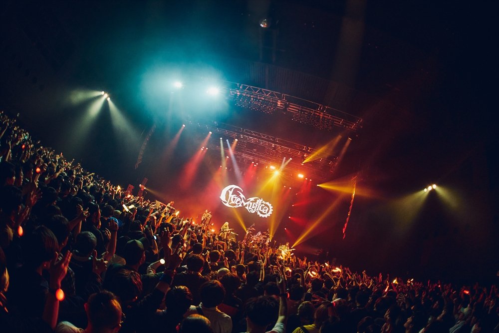 続くAve Mujicaは、ステージに姿を見せるや否や強靭な歌と演奏による「KiLLKiSS」で一気に激情的な世界観へと誘う。間髪入れずに投下された「顔」が場内の興奮を高め、「‘S/’ The Way」ではそのスケールをさらに拡張。重厚なサウンドに呼応するように多くの腕とペンライトが上がり、会場全体が演出の一部として機能する。「八芒星ダンス」では重厚かつリズミカルな展開で空気を揺らし、「Angles」では陰影のあるサウンドで奥行きを加える。さらに楽曲ごとに変化する表情や所作がステージの世界観に厚みをもたらし、視覚と聴覚の双方から引き込んだ。「Symbol II : Air」から「Sophie」へと流れる中で段階的に熱気を高め、ラストの「Symbol I : △ 」でそのイメージを鮮やかに焼き付ける。細密に組み上げられたステージングが、観る者の感覚により深く強く刻まれ、その高まりは最後まで途切れることがなかった。