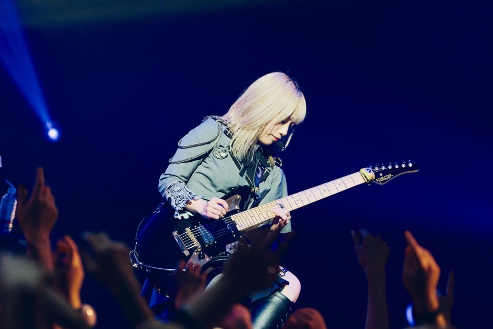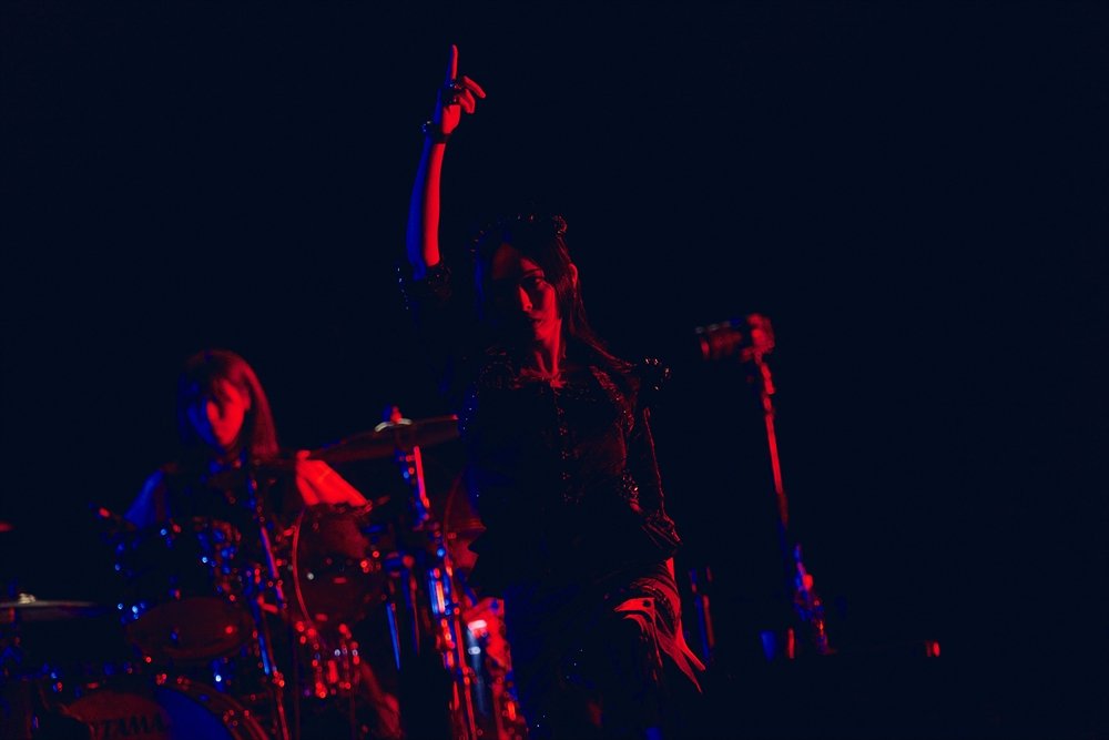 KT Zepp Yokohamaで行われた『CENTRAL LAB.』のステージは、冒頭から濃密な熱気に包まれていた。トップバッターを務めたReoNaは、TVアニメ「シャドーハウス」エンディングテーマで中毒性の高いトラックメイクと歌唱が印象的な「ないない」で幕を開ける。続く「生命線」では、刹那的な歌声でさらに会場の空気をその独特な世界感に染めていく。オーディエンスの意識を一気に引き寄せた張り詰めた緊張感と、どこか救いを求めるような響きが交錯し、フロア全体に深い没入感が広がる。「今日はAve MujicaさんとBAND-MAIDさんとの3マンライブ……気がつけばみんなガールズたちですね」と柔らかく語りかけるMCを挟み、「Girls Don’t Cry」ではアコースティックギターを片手に芯のある強さをにじませる。さらに故郷奄美への想いを語り歌い始めた最新曲「結々の唄」では繊細かつ優しい感情を丁寧に紡いだ。絶望系アニソンシンガーを象徴するような楽曲「Debris」では鋭さを帯びた中にも「生きていこう」という想いを提示。曲ごとに感情の温度を緻密に変化させながら、心の奥へと静かにそして確かな足どりで踏み込んだ。「ソードアート・オンライン」とのコラボレーションから生まれた「Weaker」から「ANIMA」へと続く終盤は、内面に潜む衝動を解き放つようなアグレッシヴなパフォーマンスで締めくくられ、オーディエンスの大歓声とともに強い余韻を残した。