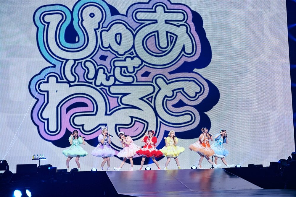 7人がステージに並ぶだけで放つ、強烈な存在感と可愛さで圧倒。突き上げる歓声で始まったCANDYTUNEのステージ。「キス・ミー・パティシエ」「アイしちゃってます♡」と”かわいい”を惜しげなく振りまくと、「レベチかわいい!」でオーディエンスを悩殺。「倍倍FIGHT!」に会場中が声を合わせるシーンは美しく、感動的でさえあった。
