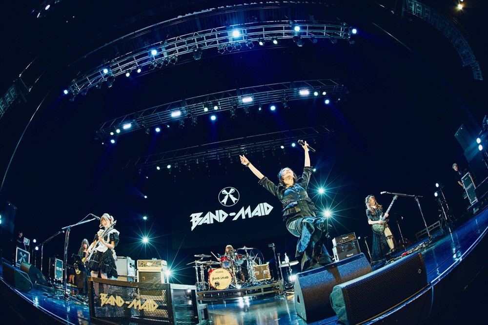 トリを飾ったBAND-MAIDは、「What is justice?」で研ぎ澄まされたバンドサウンドを突きつけ、「glory」「Choose me」と畳みかけるように勢いを加速させる。無駄のない演奏とタイトなグルーヴが序盤から身体を揺らし、フロアの温度を一段階引き上げた。「SUPER SUNSHINE」では明るさを放ちつつ、「Protect You」でエモーショナルな側面を提示するなど、多彩な表現で引きつける。「Shambles」では攻撃性を前面に押し出し、「Dilly-Dally」ではSAIKIが「クラップできる人?」と呼びかけると盛大な手拍子が広がり、「みんなの腕を壊していくよ!」とさらなる熱狂を生み出した。メンバー同士の呼吸が噛み合った演奏が、ライブならではの高揚感を増幅させ、楽曲の魅力をより鮮明に浮かび上がらせる。5人が放つ音とパフォーマンスにフロアの反応が重なり合い、視覚的にも強いインパクトを残した。「Present Perfect」から「Ready to Rock」へとつなぎ、最後の「NO GOD」では圧倒的な音圧と一体感で会場を完全に掌握した。
