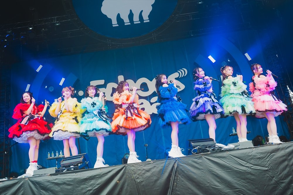 メインアクトとして先陣を切った=LOVEは、イントロから佐々木舞香の歌声に歓声が上がった「絶対アイドル辞めないで」を皮切りに、「ラブソングに襲われる」「超特急逃走中」といったキュートなラブソングで会場の心を掴む。そこから一転、“愛”以上に深い”呪い“がテーマのダークなラブソング「呪って呪って」、リリースされたばかりの最新曲「劇薬中毒」の2曲で、真骨頂でもあるシリアスな=LOVEで客席を魅了していく。齋藤樹愛羅が「いらない ツインテール」でフロアを煽ったかと思えば、「この空がトリガー」「青春”サブリミナル”」といった爽やかな“青春ソング”を響かせ、ラストはTikTokで話題を呼んだ楽曲「とくべチュ、して」を披露し、次のアイドルへとバトンを繋いだ。