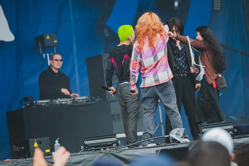 「ジャンプして下さい!」とOmega Sapienが煽り始まった「Kolo Kolo」から「Armadillo」と続き、オルタナティブかつ独創的な歌とパフォーマンスで驚かせたBalming Tiger。中毒性ある楽曲やダンスで観る者の心を射抜き、「POP THE TAG」は煽るまでもなく会場中がジャンプを合わせた。
