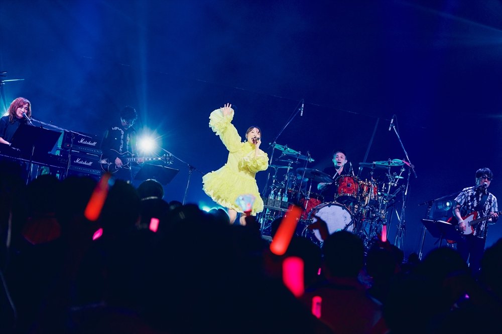 続いて登場したのは花澤香菜。黄色のボリュームスリーブが印象的な衣装で、北川勝利らバンドメンバーの待つステージに登場すると「SHINOBI-NAI」を歌唱。会場にはピンクのペンライトが広がっていく。中盤には最新シングルの「Cipher Cipher」を披露。ハンズクラップやコールアンドレスポンスなどフェスらしい盛り上がりを見せつつ、楽曲の世界観がシームレスに連なっていった。