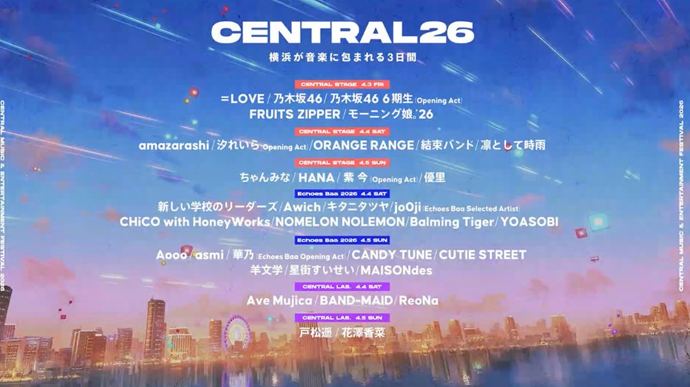 2026年4月3日(金)~5日(日)の3日間、都市型フェス『CENTRAL MUSIC & ENTERTAINMENT FESTIVAL 2026』が開催されました。