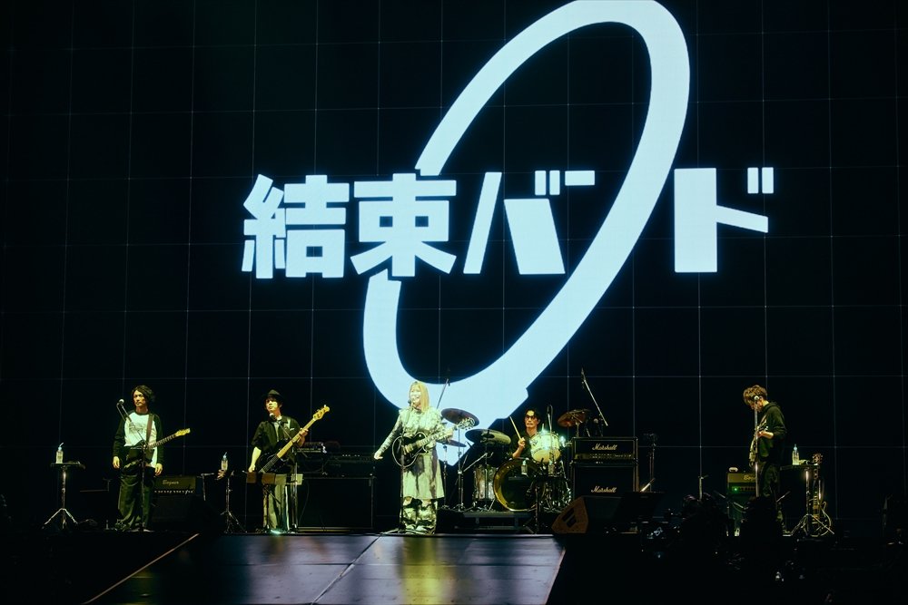 そして、はまじあき原作のアニメ『ぼっち・ざ・ろっく!』から飛び出したバンド、結束バンドが登場。バンドの魂の唸りのようなインスト“後藤覚醒のテーマ(仮)”から“あのバンド”へとなだれ込むドラマチックな展開でライブは始まった。長谷川育美(Vo)はMCで「日本の響きを世界へ」という「CENTRAL」のテーマにシンパシーを語りつつ、美しくもパワフルな歌声を響かせる。さらに、青山吉能(Vo)は自らエレキギターを抱え、作品にとって重要な存在であるASIAN KUNG-FU GENERATIONの“転がる岩、君に朝が降る”と“Re:Re:”のカバーを披露。『ぼっち・ざ・ろっく!』が伝えたバンド音楽に宿るピュアな衝動を、エモーショナルで清々しいパフォーマンスを通して改めて感じさせてくれた。