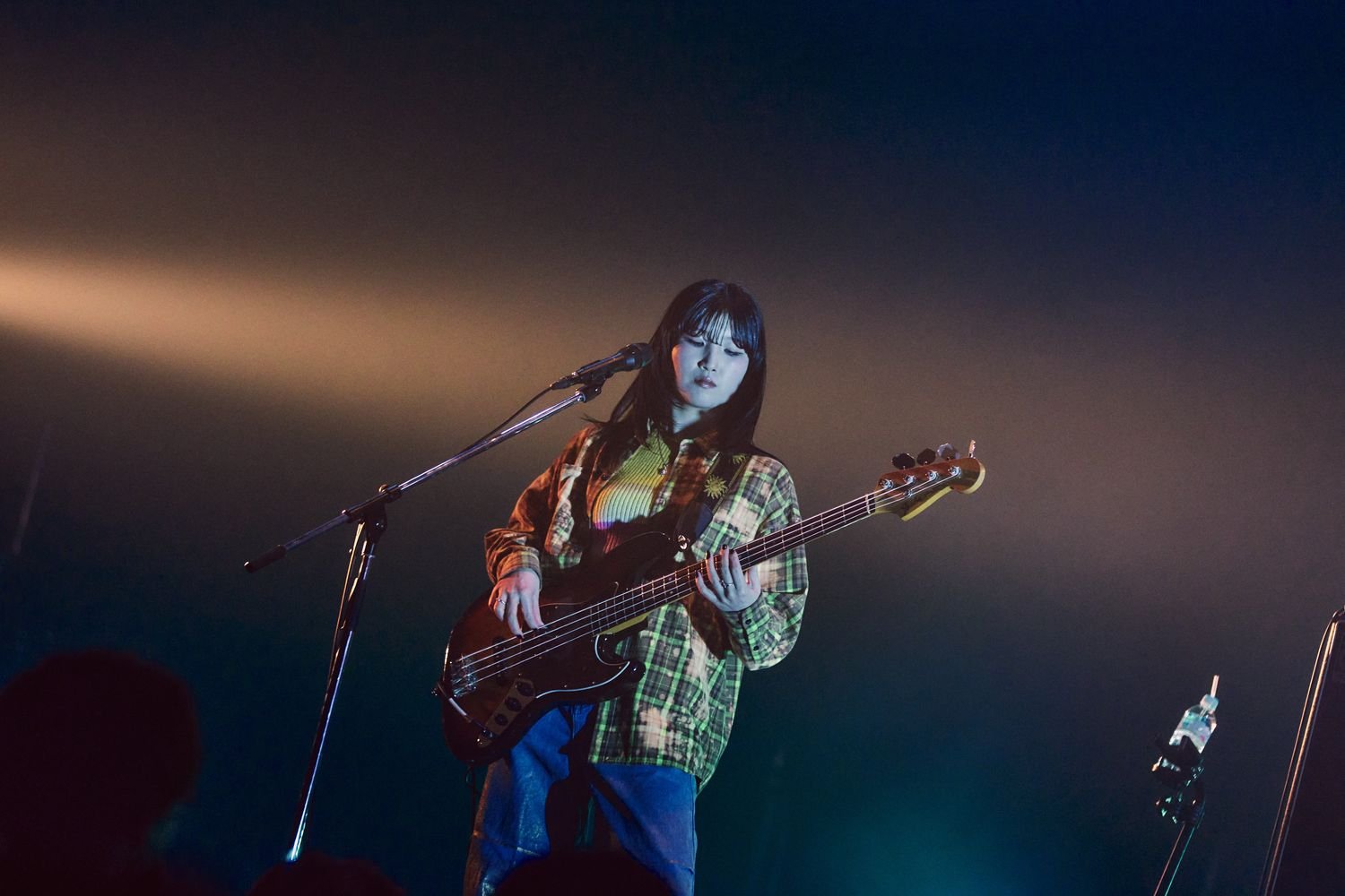 離婚伝説は、品があり涼やかなボーカル、表情豊かで雄弁なギター、心地よいグルーヴでオーディエンスを魅了した。曲間を繋ぐバンドセッションなど、ライブならではのアレンジも聴き応え抜群。観客は自由に身を揺らし、メンバーによるファインプレーの数々に、興奮しながら歓声を上げた。歌詞のリフレインが特徴的な「愛が一層メロウ」では、松田歩がフロアからのシンガロングに「みんな最高だった、ありがとう」と反応する一幕も。4月9日(水)に配信リリースする新曲「紫陽花」もサプライズで初披露された。