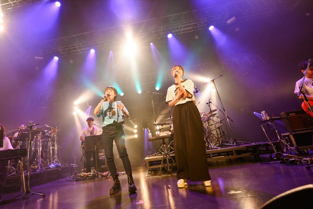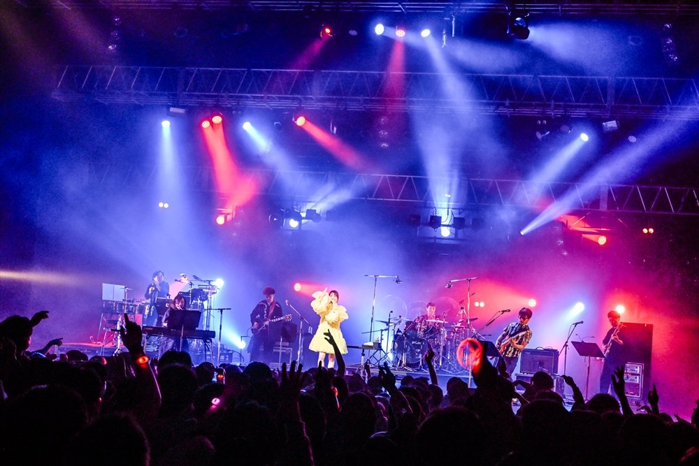 アンコールでは花澤のサポートバンド・ディスティネーションズの演奏のもと、花澤と雫が「SHINOBI-NAI」でコラボする。歌でもトークでも息の合った二人の掛け合いに名残り惜しくなるが、今夜の対バンも残すところあと1曲。ラストはもちろん「Cipher Cipher」で、ポルカのメンバーもマラカスやタンバリンを持って登場してステージを盛り上げ、最後に全員集合のラインナップで客席からの盛大な拍手に応えていた。