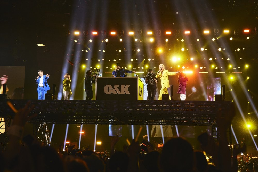 ラストの「夜空」では、総勢60名の明浄学院高等学校吹奏楽部が登場し、ハートフルで力強い演奏とともに本編が終了。さらにアンコールでは、最新曲「TO BE」を披露し、“渡米”“欧米”“南米”“魚べい”といった言葉遊び満載のコール&レスポンスで会場を笑顔に包み込んだ。笑って、泣いて、驚いて、最後には多幸感で満たされる――そんなC&Kのエンターテインメントの真髄が、アンコールまで余すことなく詰め込まれていた。