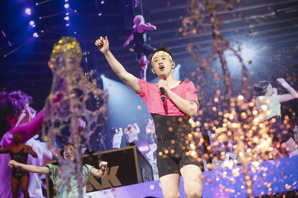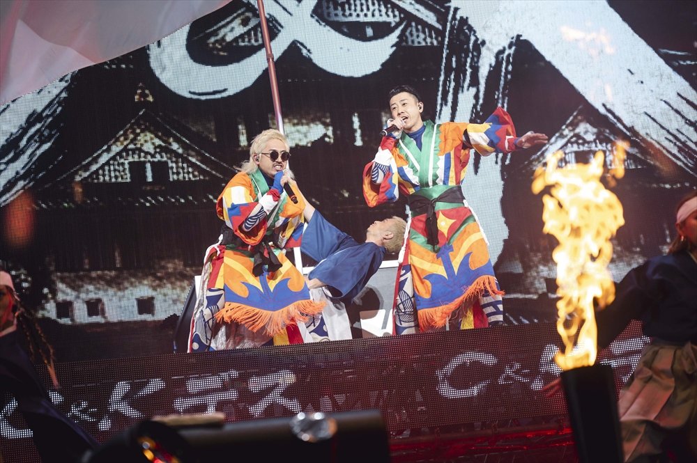 オープニングは、ちょんまげ姿のC&Kが水不足に苦しむ大阪城の人々を救うという、まるで時代劇のような映像で幕が開けた。テーマ曲「C&K Ⅸ」からライブが華々しくスタートすると、約50人のキッズダンサーがステージに雪崩れ込み、「ジャパンパン~日本全国地元化計画~」「パーティ☆キング」などを立て続けに披露。序盤から会場のボルテージは一気に最高潮へと引き上げられた。