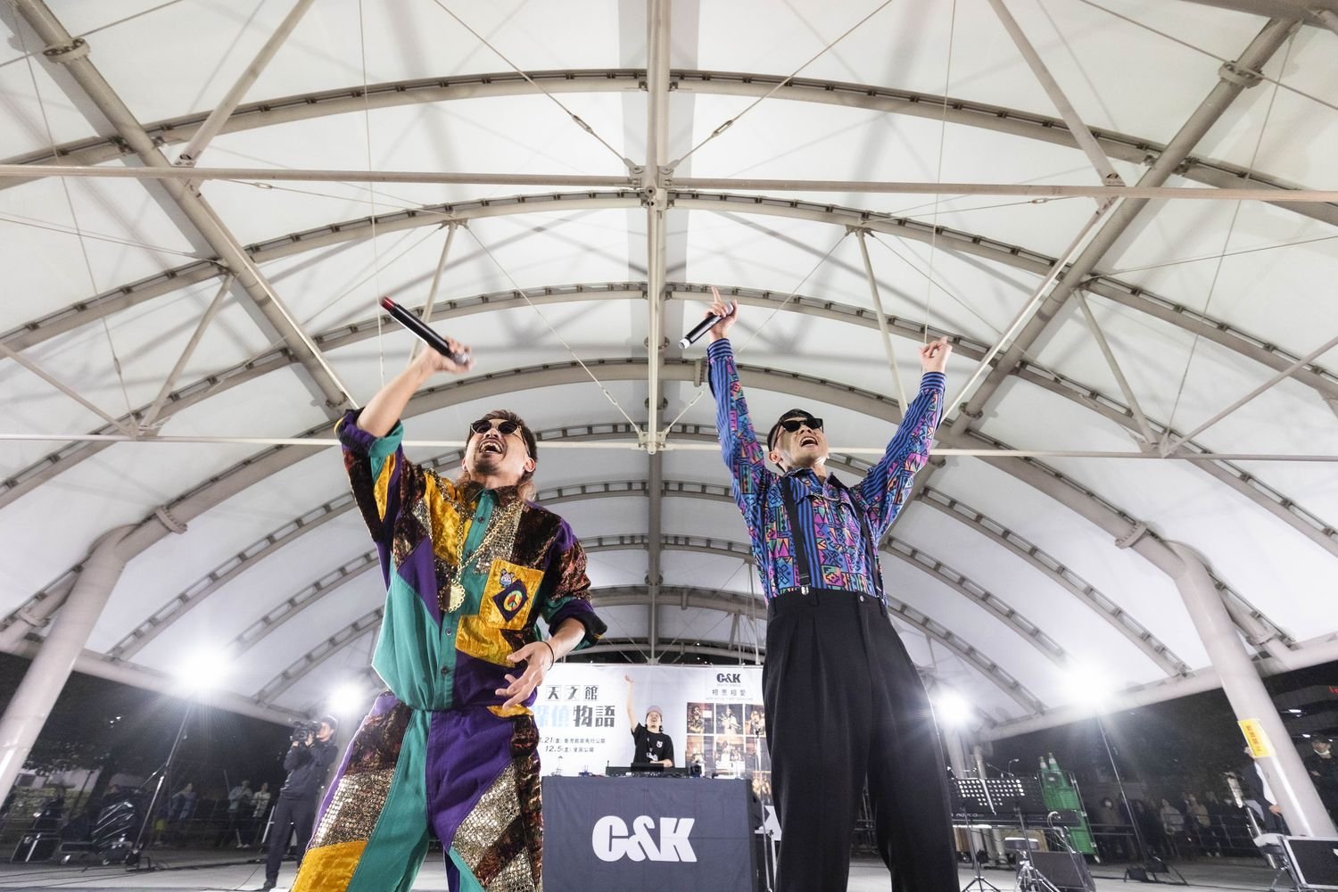 CLIEVYとKEENからなる男性二人組シンガーソングライターユニットC&Kが、主題歌を務める映画「天文館探偵物語」 の鹿児島先行公開を記念して、11月27日(木)に鹿児島・天文館公園でフリーライブを開催。主題歌「相思相愛 with SOIL&"PIMP″SESSIONS」を含む全8曲を披露し、会場に集まった約4,000人を圧巻のパフォーマンスで盛り上げた。